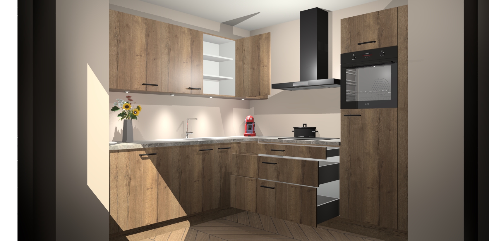 Met een modern, tijdloos design en ruime opslagruimte, zult u zich in no-time thuis voelen in uw nieuwe keuken. Uw leven wordt eenvoudiger met de soft-close deuren die voor het ultieme stille comfort zorgen - geen geluid dat u stoort terwijl u kookt. Ook is de keuken voorzien van 5 ingebouwde apparaten: een oven, inductie kookplaat, afzuigkap, vaatwasser en koelkast. Deze kunnen gemakkelijk na bestelling worden bijgewerkt naar AEG - waardoor uw luxe ervaring compleet is.