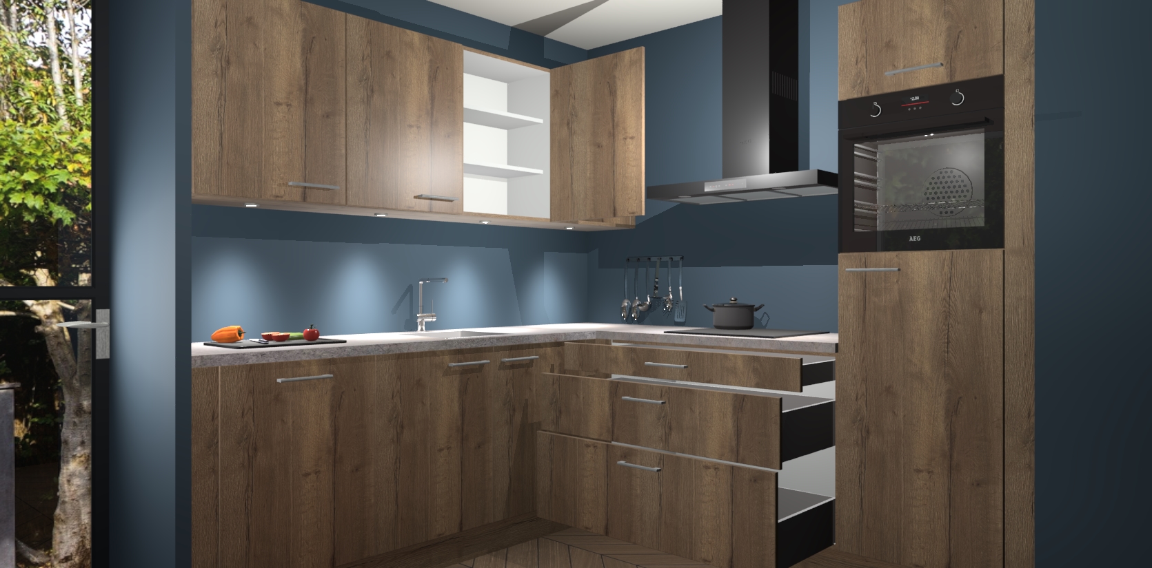 Wij presenteren de revolutie in keukens: de Chocolade Eiken keuken Luanda. Met modern design, een tijdloos uiterlijk en kasten die al voor gemonteerd worden geleverd, laat deze stijlvolle keuken uw kookervaring op een hele nieuwe manier transformeren.