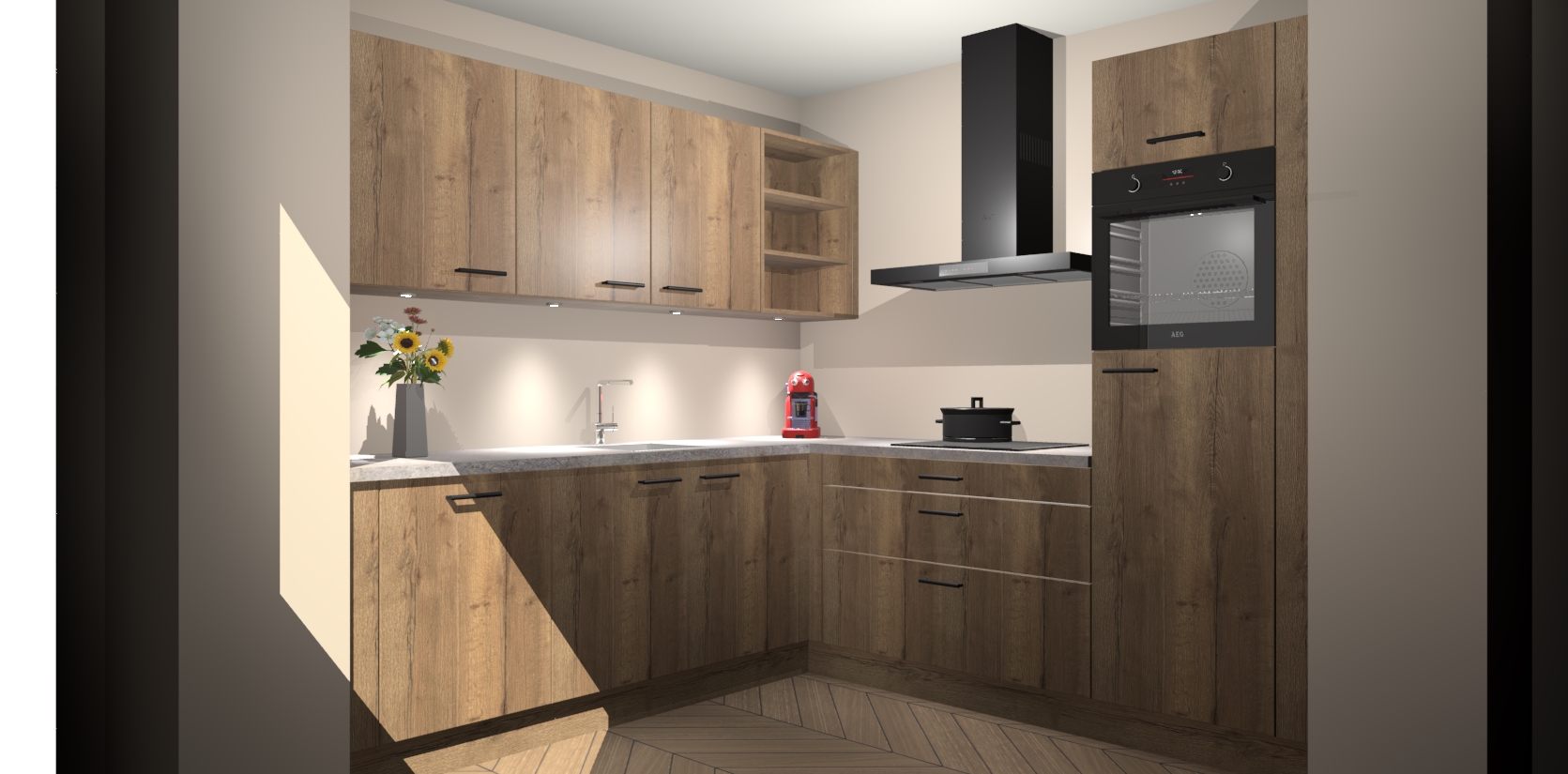 Wij presenteren de revolutie in keukens: de Chocolade Eiken keuken Luanda. Met modern design, een tijdloos uiterlijk en kasten die al voor gemonteerd worden geleverd, laat deze stijlvolle keuken uw kookervaring op een hele nieuwe manier transformeren.