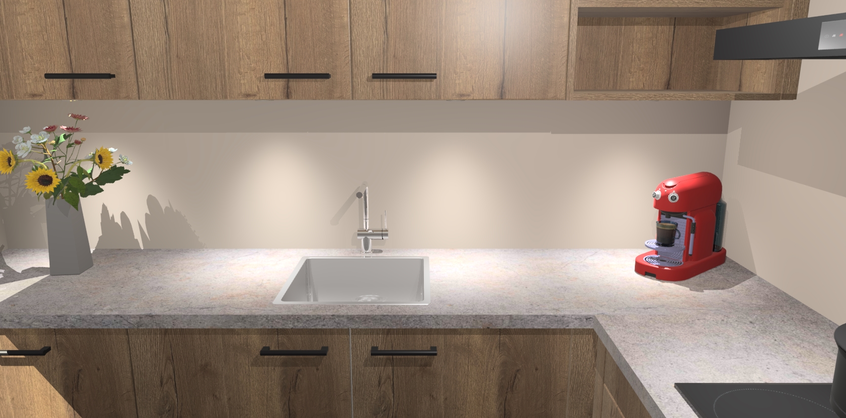 - Bij een hoekwerkblad zijn de hoeken in gevreesd en op maat gemaakt