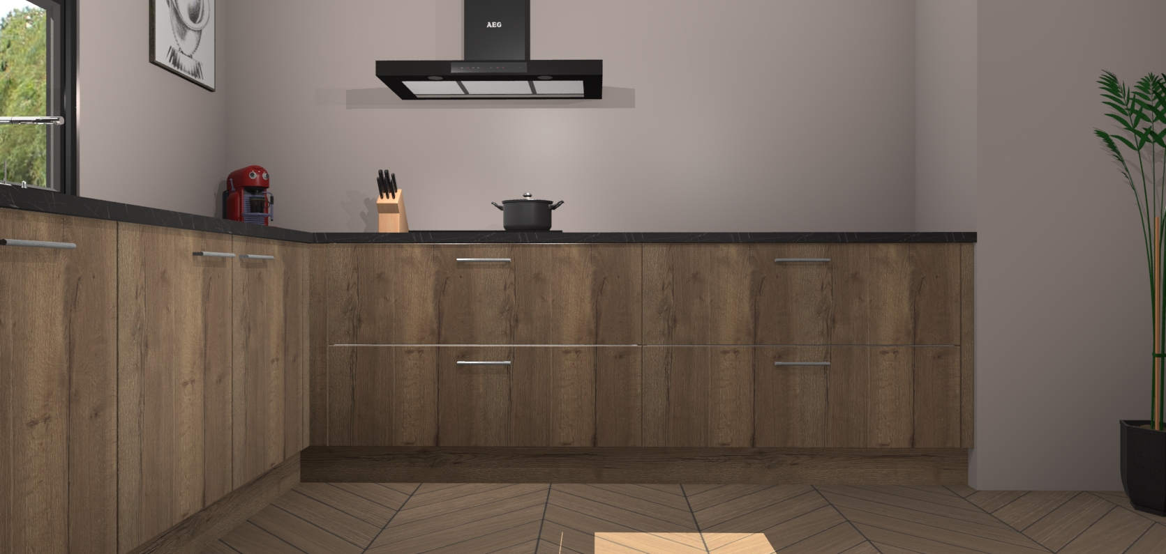 Inclusief plinten, stelpoten en werkblad