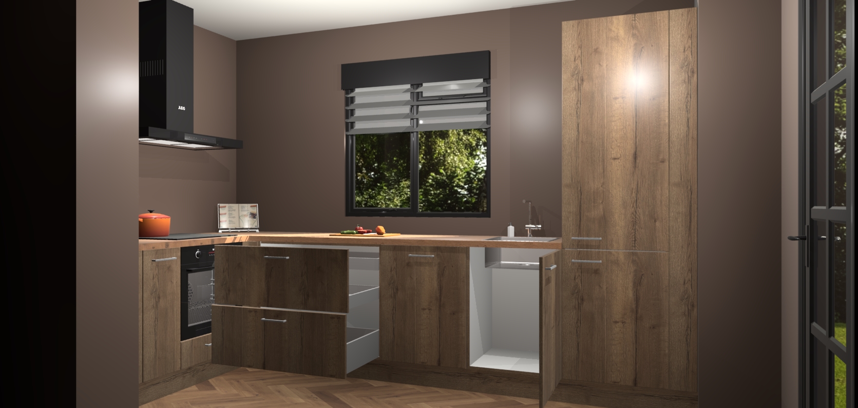 Moedige modernisten! De Chocolade Eiken keuken Luzern is het perfecte antwoord op al uw keukendromen. Dit geraffineerde, tijdloze ontwerp combineert strakke kasten zodat u die dure look krijgt zonder het dure prijskaartje. We weten dat planning en uitvoering de sleutels zijn tot een geslaagde keukenrenovatie, dus hebben we ervoor gezorgd dat we vijf inbouwapparaten in ons pakket hebben: een oven, inductiekookplaat, afzuigkap, vaatwasser en koelkast. Deze kunnen na bestelling gemakkelijk worden uitgebreid voor nog meer gemak.