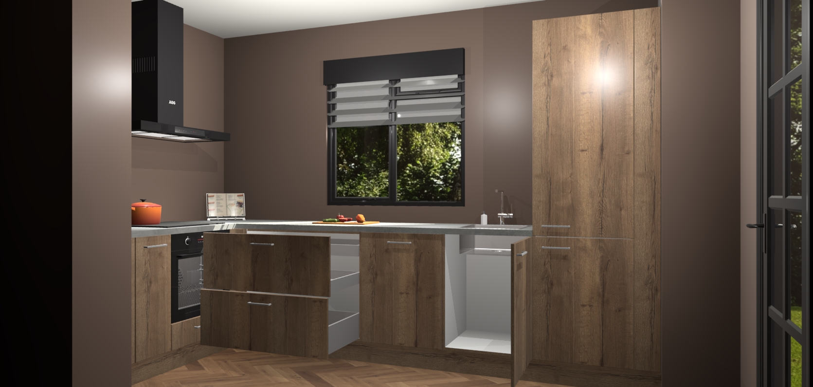 Moedige modernisten! De Chocolade Eiken keuken Luzern is het perfecte antwoord op al uw keukendromen. Dit geraffineerde, tijdloze ontwerp combineert strakke kasten zodat u die dure look krijgt zonder het dure prijskaartje. We weten dat planning en uitvoering de sleutels zijn tot een geslaagde keukenrenovatie, dus hebben we ervoor gezorgd dat we vijf inbouwapparaten in ons pakket hebben: een oven, inductiekookplaat, afzuigkap, vaatwasser en koelkast. Deze kunnen na bestelling gemakkelijk worden uitgebreid voor nog meer gemak.