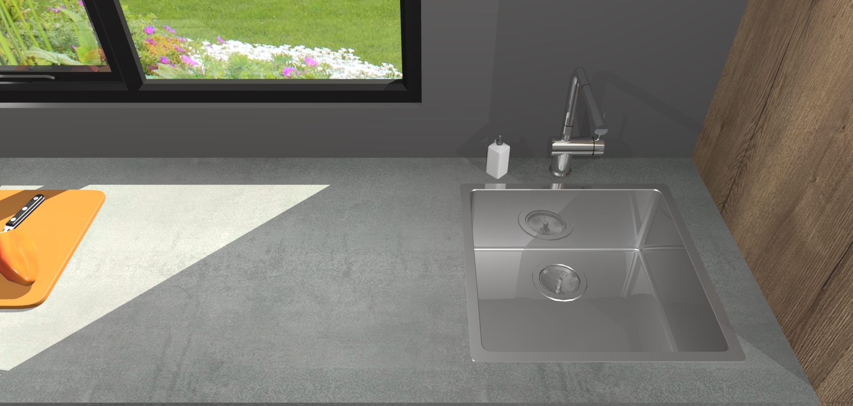 - De spoelbak is nog niet in gevreesd. Dit dient tijdens het werk gedaan te worden