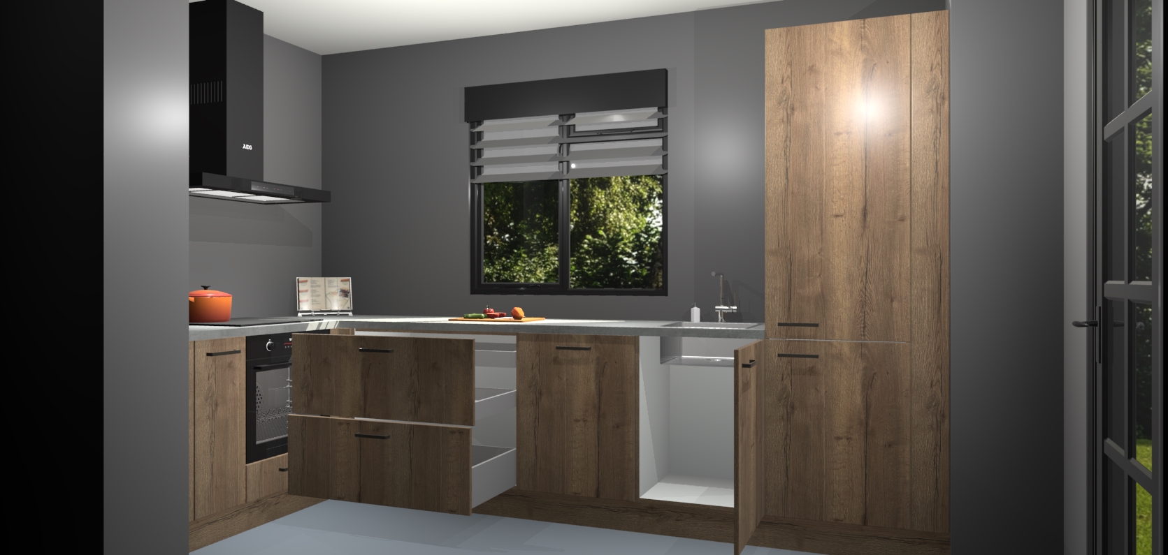 Moedige modernisten! De Chocolade Eiken keuken Luzern is het perfecte antwoord op al uw keukendromen. Dit geraffineerde, tijdloze ontwerp combineert strakke kasten zodat u die dure look krijgt zonder het dure prijskaartje. We weten dat planning en uitvoering de sleutels zijn tot een geslaagde keukenrenovatie, dus hebben we ervoor gezorgd dat we vijf inbouwapparaten in ons pakket hebben: een oven, inductiekookplaat, afzuigkap, vaatwasser en koelkast. Deze kunnen na bestelling gemakkelijk worden uitgebreid voor nog meer gemak.