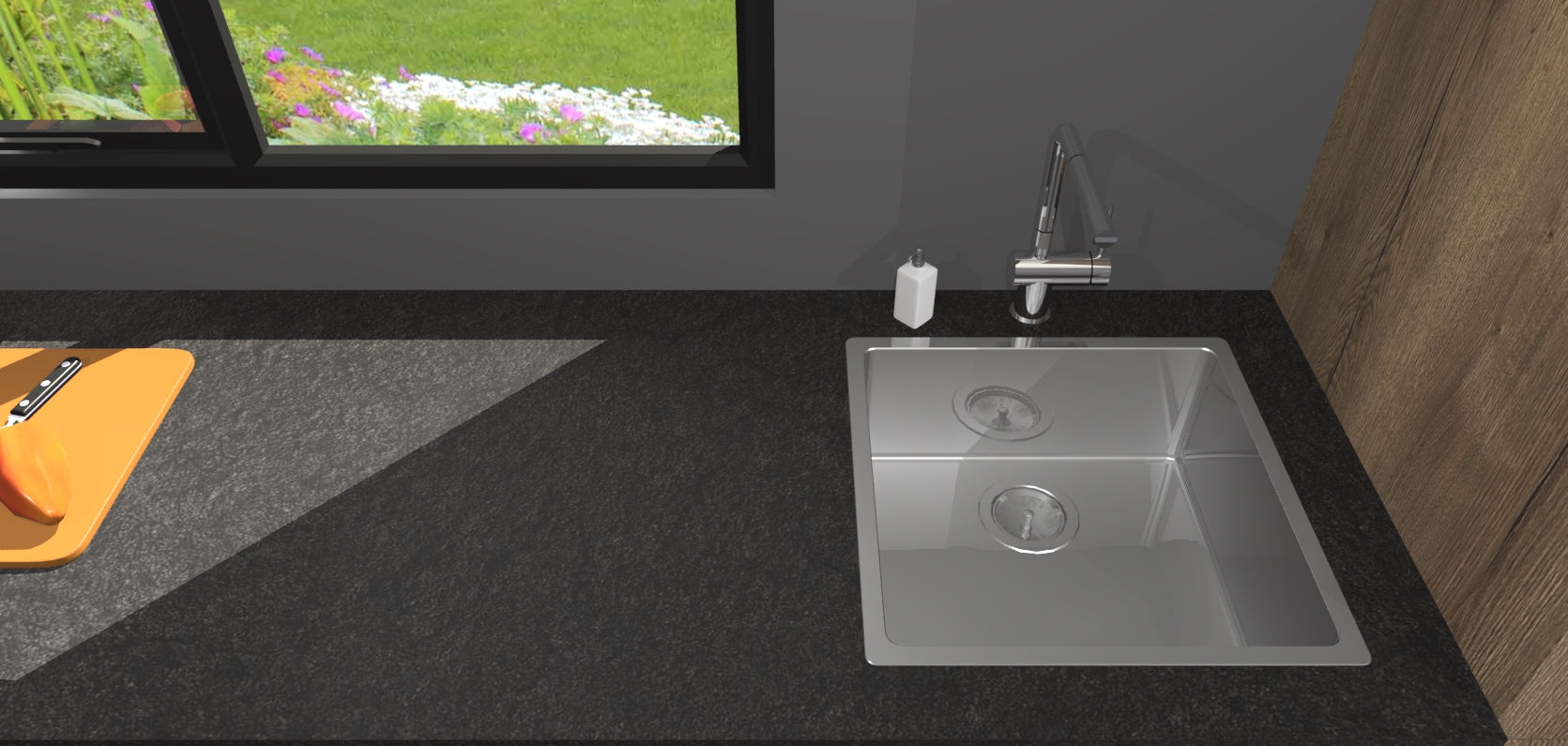 - De spoelbak is nog niet in gevreesd. Dit dient tijdens het werk gedaan te worden