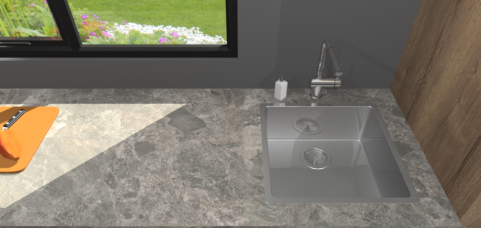 - De spoelbak is nog niet in gevreesd. Dit dient tijdens het werk gedaan te worden