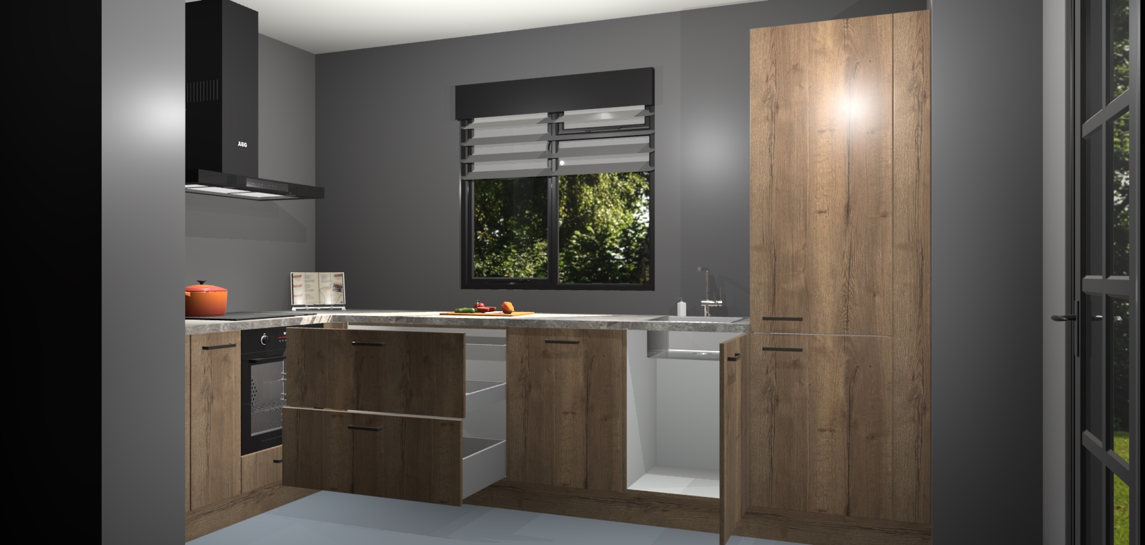 Moedige modernisten! De Chocolade Eiken keuken Luzern is het perfecte antwoord op al uw keukendromen. Dit geraffineerde, tijdloze ontwerp combineert strakke kasten zodat u die dure look krijgt zonder het dure prijskaartje. We weten dat planning en uitvoering de sleutels zijn tot een geslaagde keukenrenovatie, dus hebben we ervoor gezorgd dat we vijf inbouwapparaten in ons pakket hebben: een oven, inductiekookplaat, afzuigkap, vaatwasser en koelkast. Deze kunnen na bestelling gemakkelijk worden uitgebreid voor nog meer gemak.