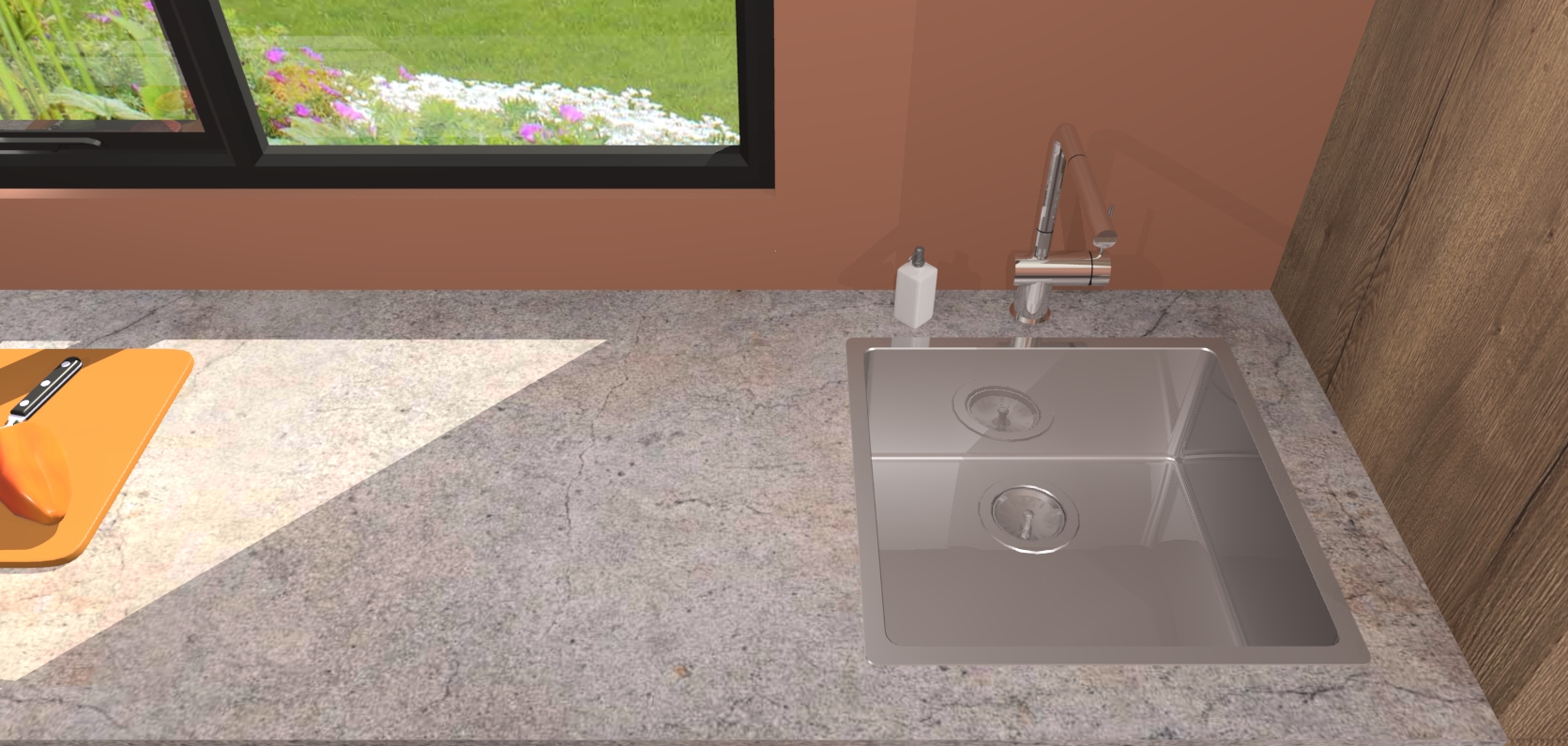 - De spoelbak is nog niet in gevreesd. Dit dient tijdens het werk gedaan te worden