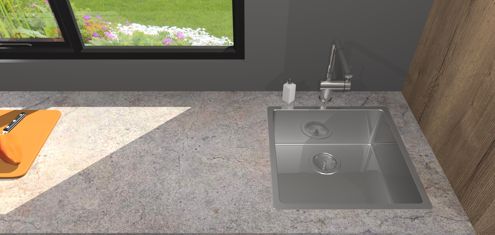 - De spoelbak is nog niet in gevreesd. Dit dient tijdens het werk gedaan te worden
