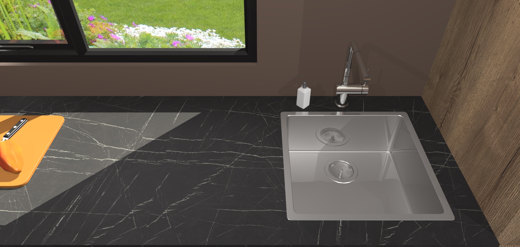 - De spoelbak is nog niet in gevreesd. Dit dient tijdens het werk gedaan te worden
