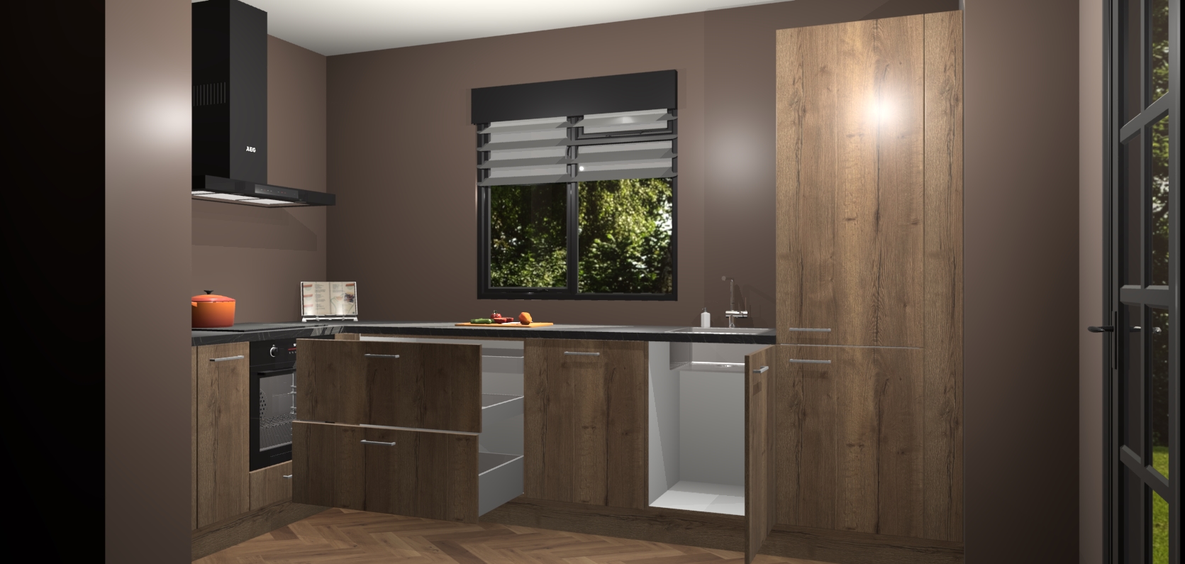 Moedige modernisten! De Chocolade Eiken keuken Luzern is het perfecte antwoord op al uw keukendromen. Dit geraffineerde, tijdloze ontwerp combineert strakke kasten zodat u die dure look krijgt zonder het dure prijskaartje. We weten dat planning en uitvoering de sleutels zijn tot een geslaagde keukenrenovatie, dus hebben we ervoor gezorgd dat we vijf inbouwapparaten in ons pakket hebben: een oven, inductiekookplaat, afzuigkap, vaatwasser en koelkast. Deze kunnen na bestelling gemakkelijk worden uitgebreid voor nog meer gemak.