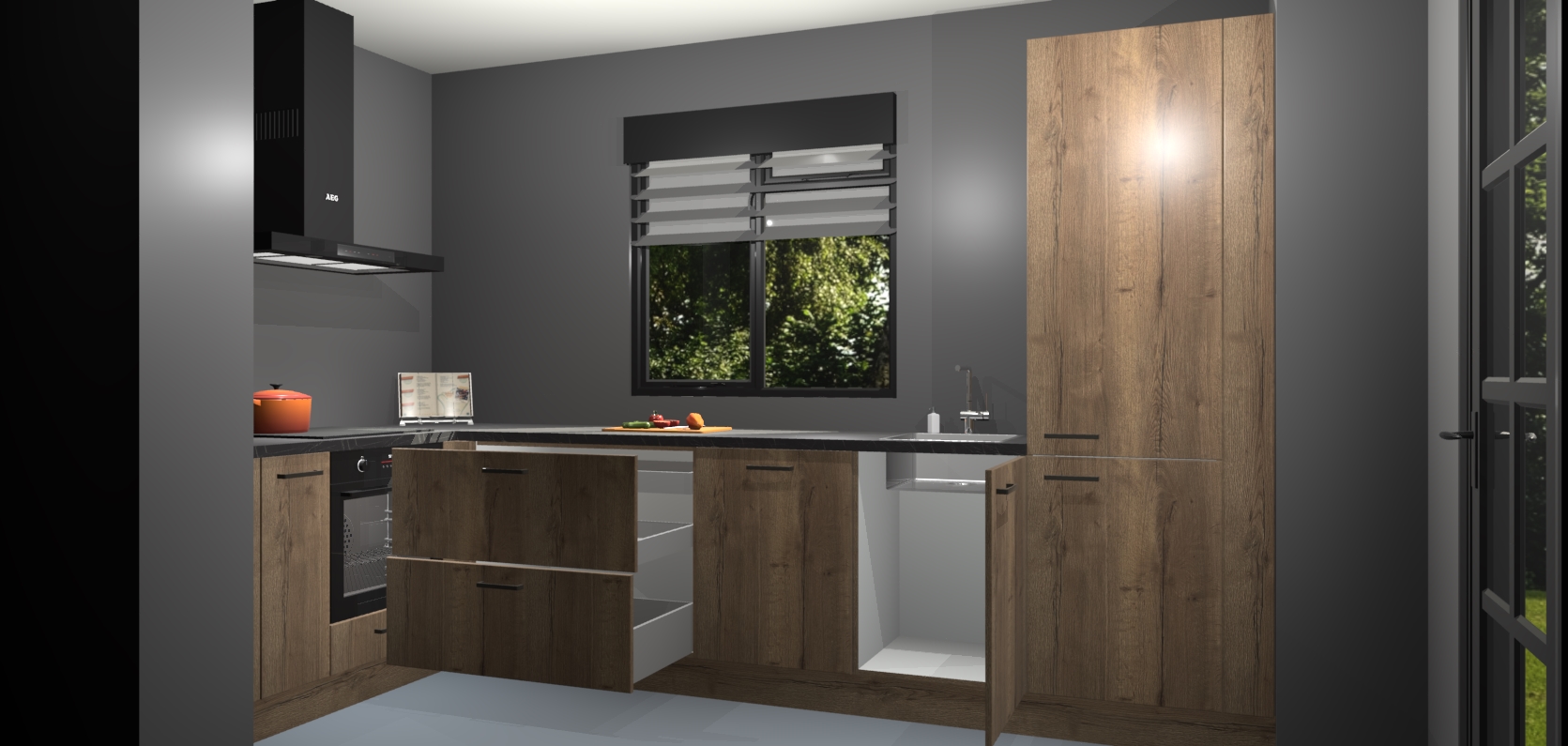 Moedige modernisten! De Chocolade Eiken keuken Luzern is het perfecte antwoord op al uw keukendromen. Dit geraffineerde, tijdloze ontwerp combineert strakke kasten zodat u die dure look krijgt zonder het dure prijskaartje. We weten dat planning en uitvoering de sleutels zijn tot een geslaagde keukenrenovatie, dus hebben we ervoor gezorgd dat we vijf inbouwapparaten in ons pakket hebben: een oven, inductiekookplaat, afzuigkap, vaatwasser en koelkast. Deze kunnen na bestelling gemakkelijk worden uitgebreid voor nog meer gemak.