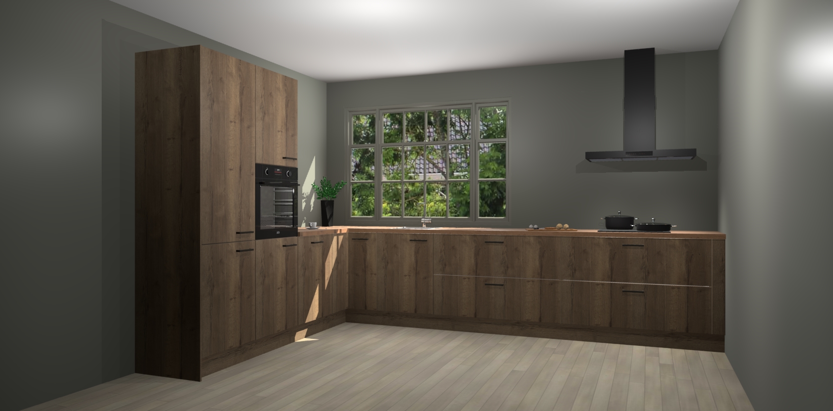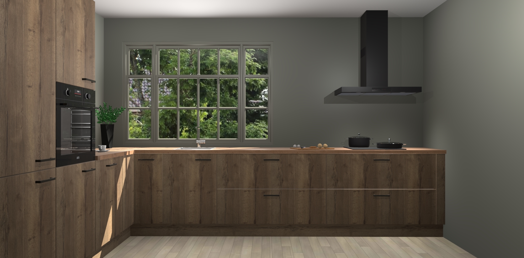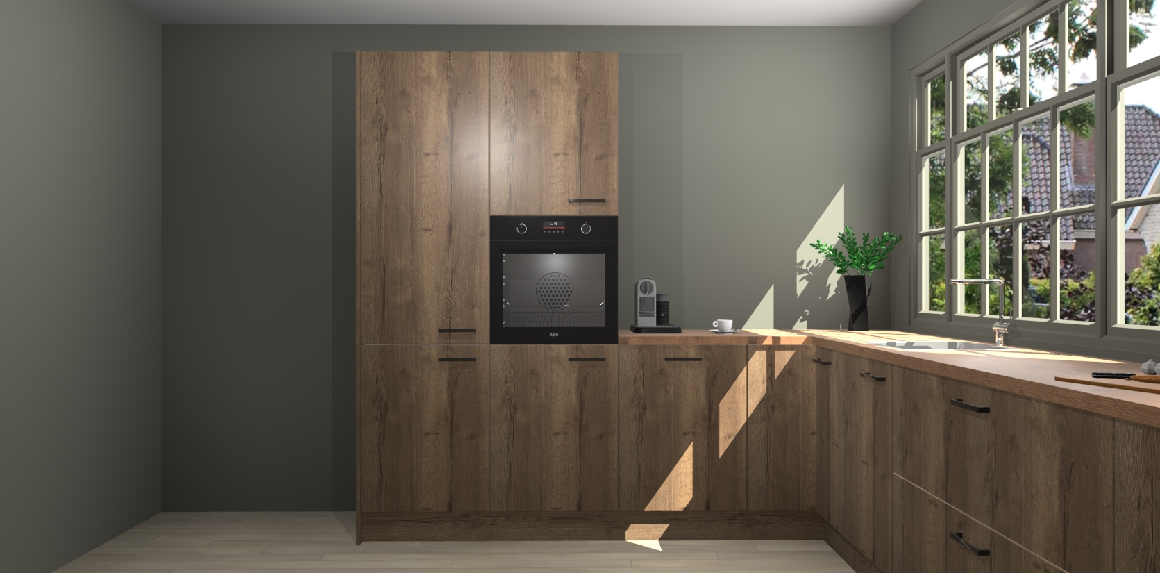 Kom dichtbij de perfecte keuken van uw dromen met de Chocolade Eiken keuken Malaga. Met een prachtige houtlook en eigentijds ontwerp, straalt deze keuken warmte en sfeer uit. Of u nu liefhebber bent van traditionele of moderne stijlen, er is genoeg ruimte om aan al uw behoeften te voldoen.