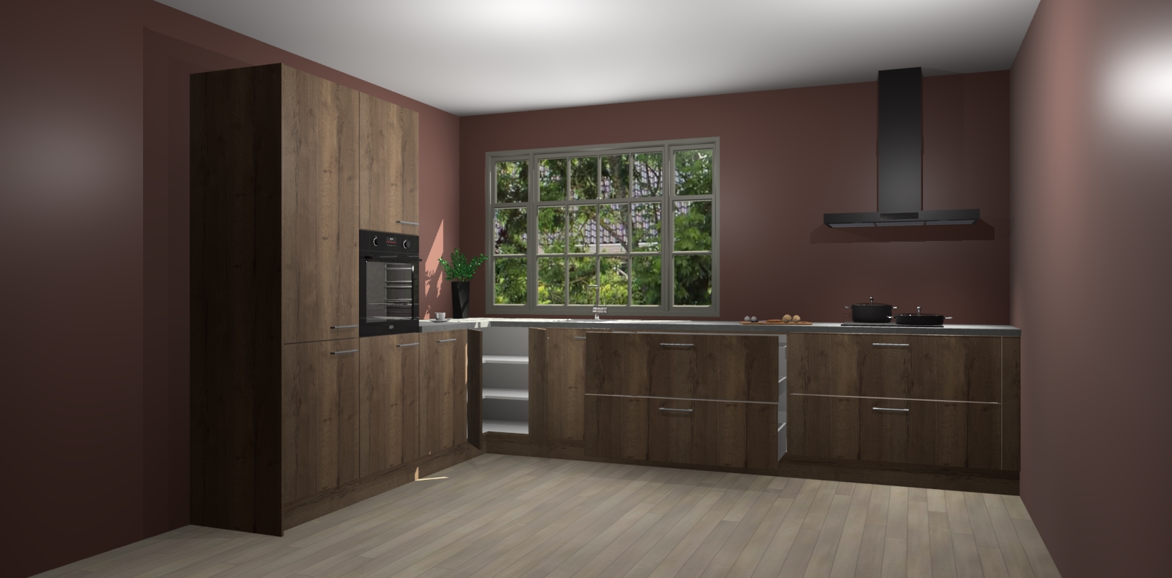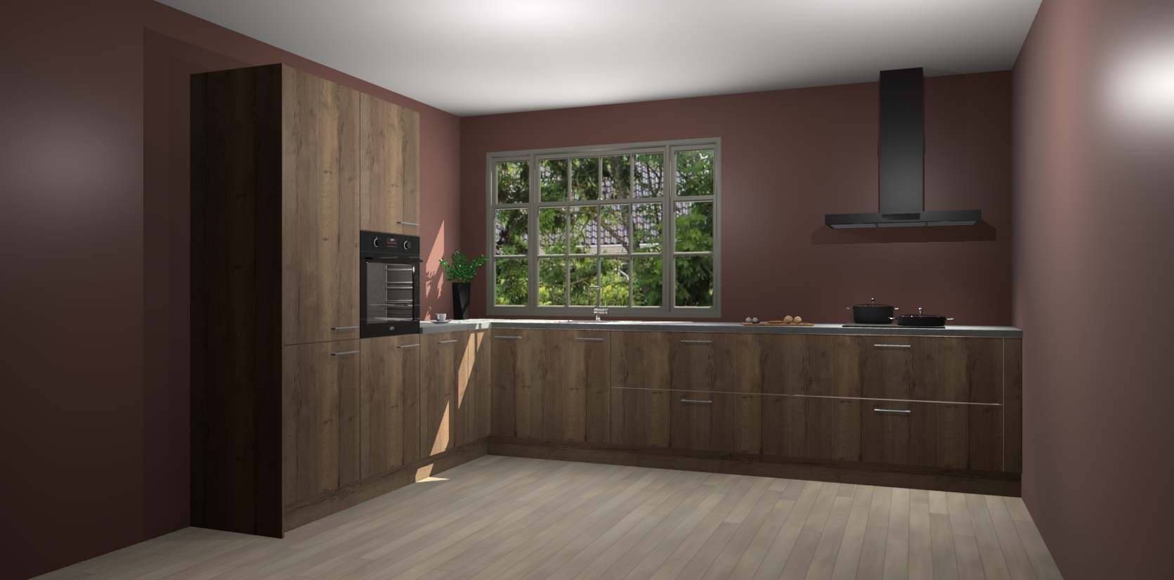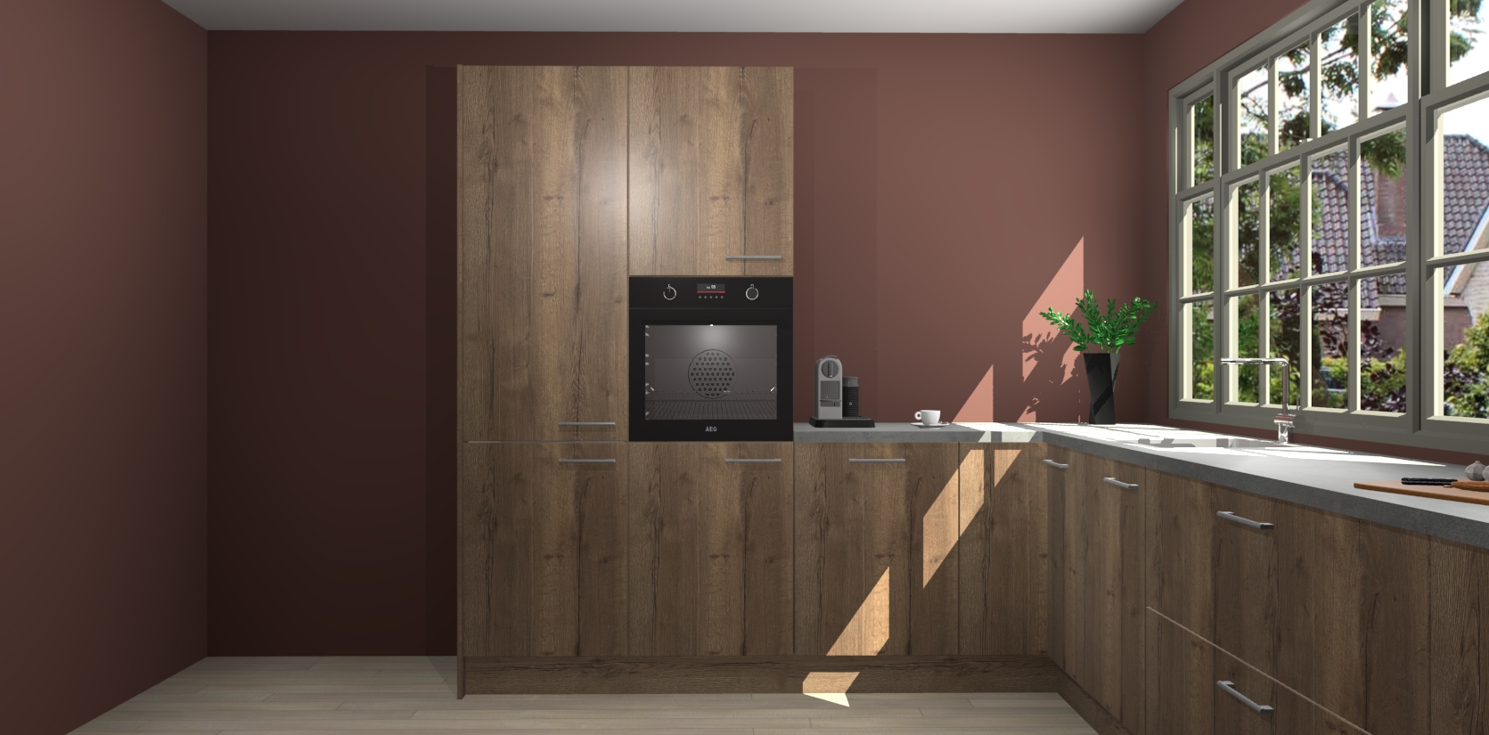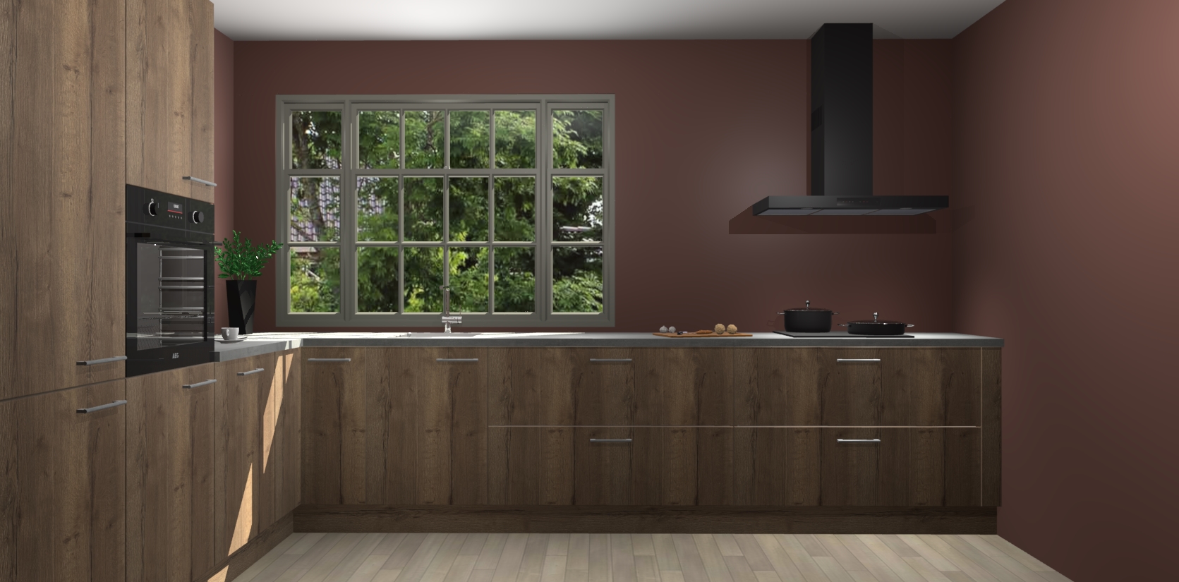 Kom dichtbij de perfecte keuken van uw dromen met de Chocolade Eiken keuken Malaga. Met een prachtige houtlook en eigentijds ontwerp, straalt deze keuken warmte en sfeer uit. Of u nu liefhebber bent van traditionele of moderne stijlen, er is genoeg ruimte om aan al uw behoeften te voldoen.