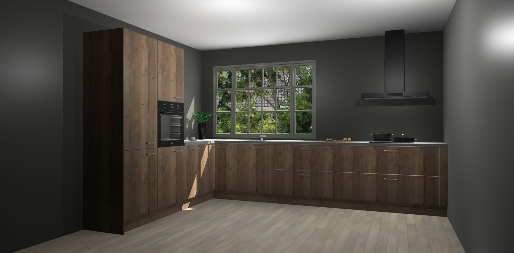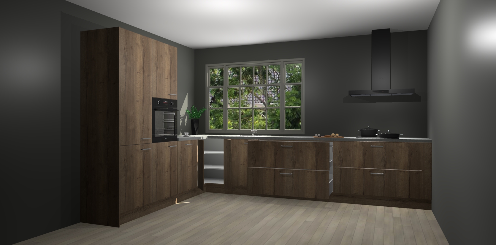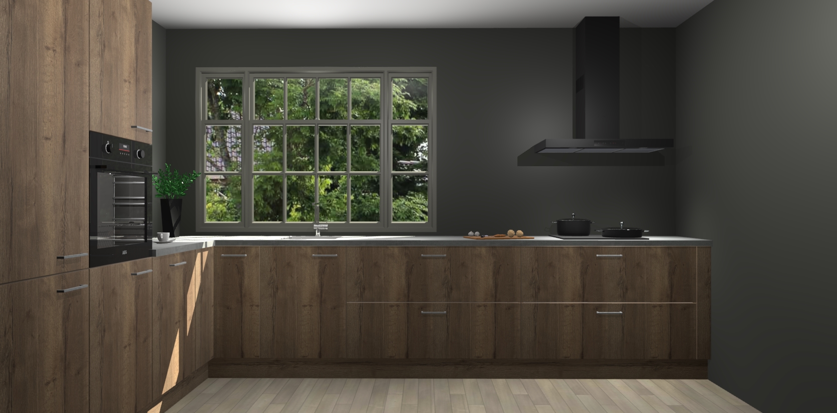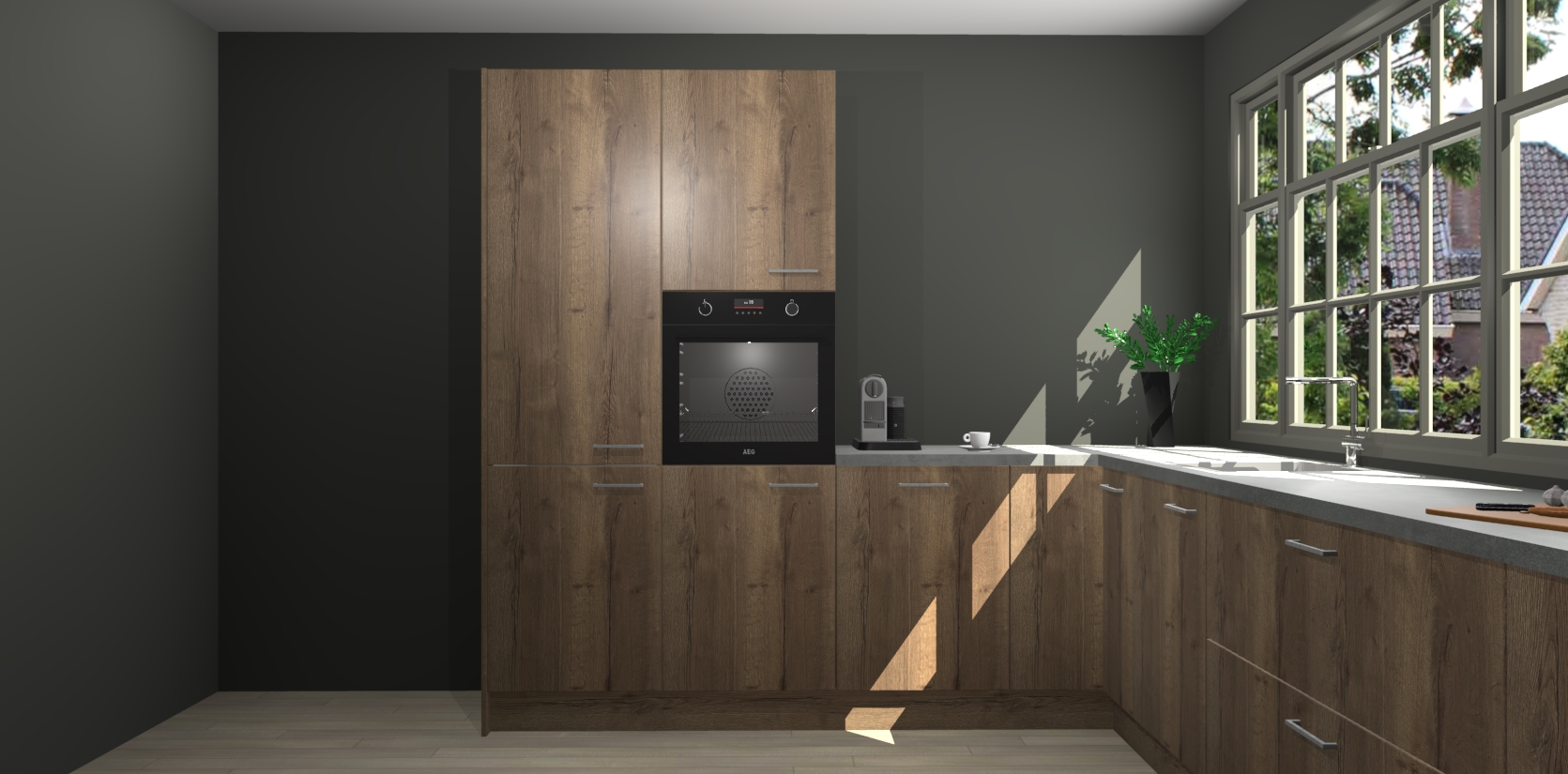Kom dichtbij de perfecte keuken van uw dromen met de Chocolade Eiken keuken Malaga. Met een prachtige houtlook en eigentijds ontwerp, straalt deze keuken warmte en sfeer uit. Of u nu liefhebber bent van traditionele of moderne stijlen, er is genoeg ruimte om aan al uw behoeften te voldoen.