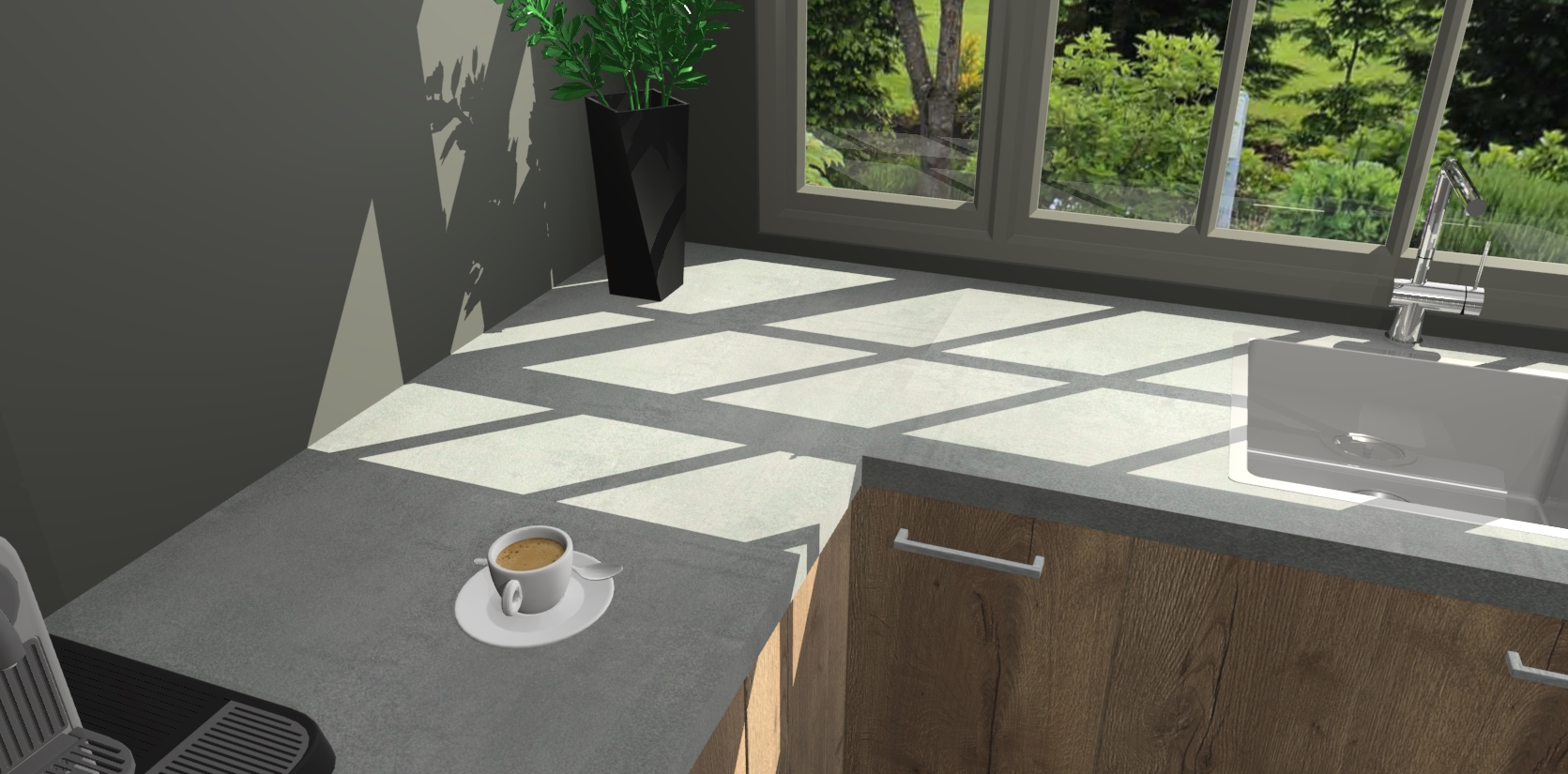 - Bij een hoekwerkblad zijn de hoeken in gevreesd en op maat gemaakt