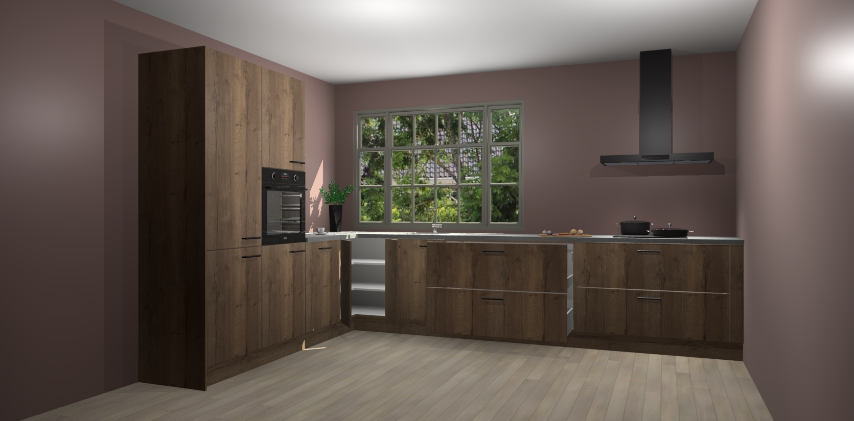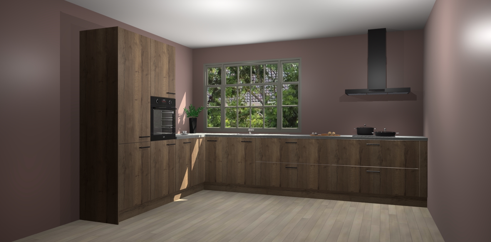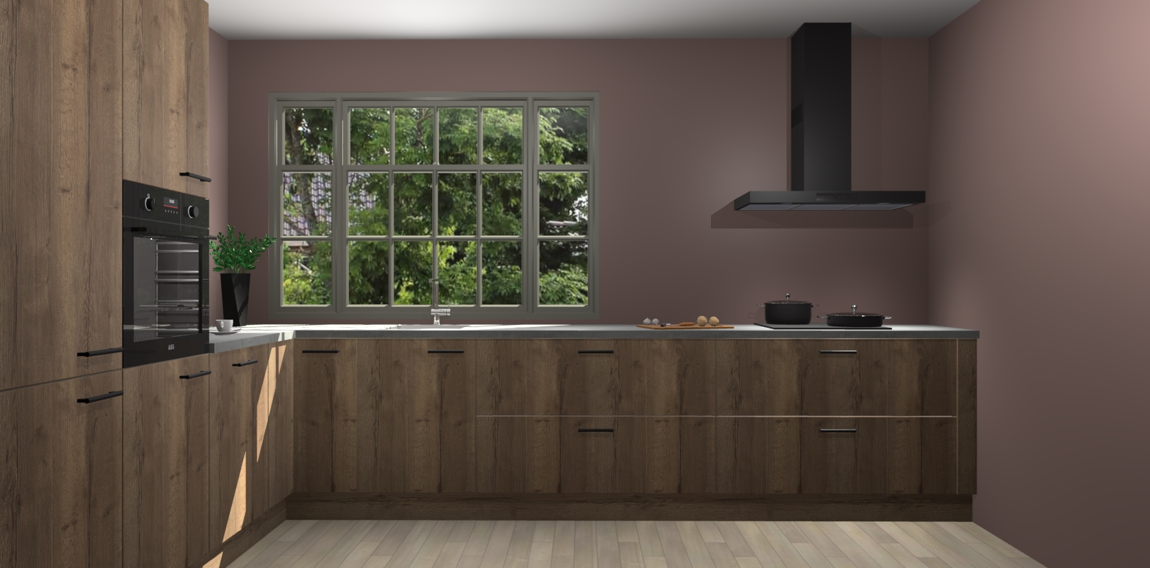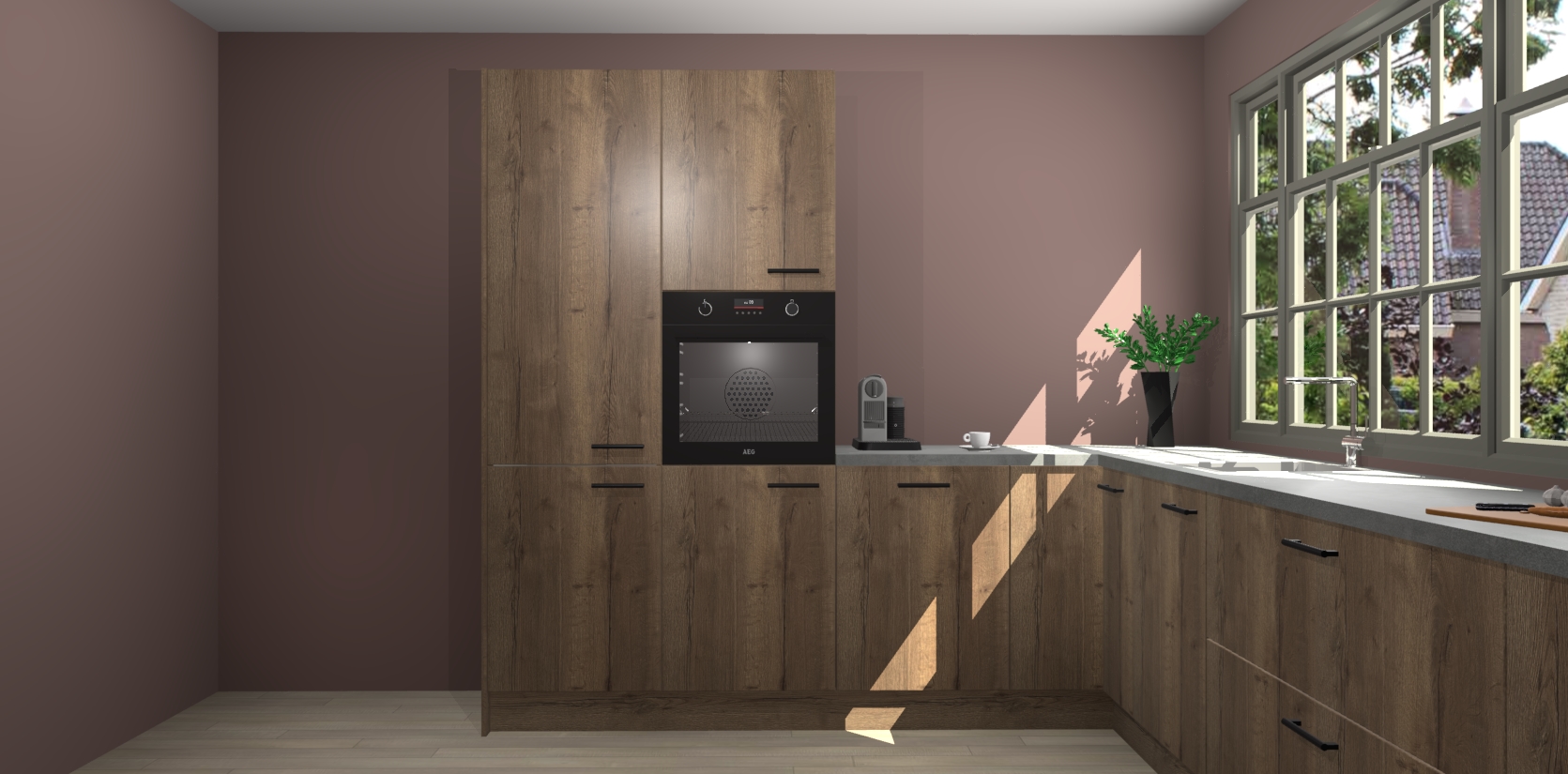 Kom dichtbij de perfecte keuken van uw dromen met de Chocolade Eiken keuken Malaga. Met een prachtige houtlook en eigentijds ontwerp, straalt deze keuken warmte en sfeer uit. Of u nu liefhebber bent van traditionele of moderne stijlen, er is genoeg ruimte om aan al uw behoeften te voldoen.
