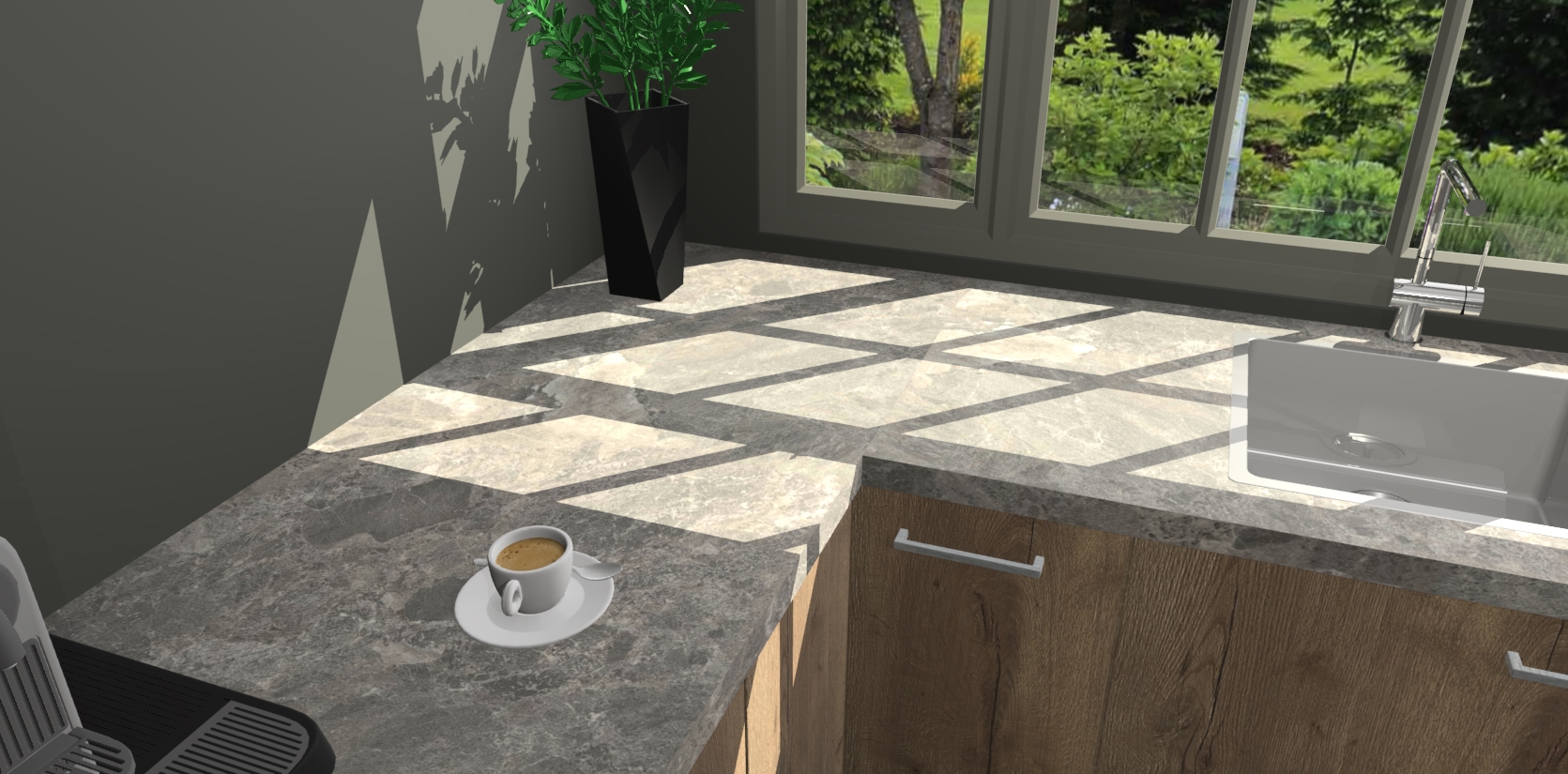 - Bij een hoekwerkblad zijn de hoeken in gevreesd en op maat gemaakt