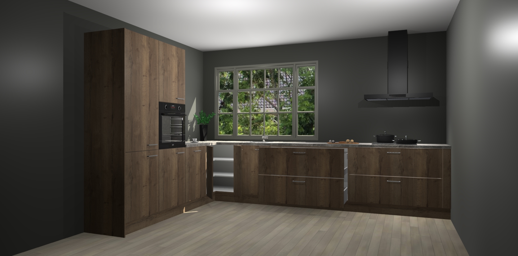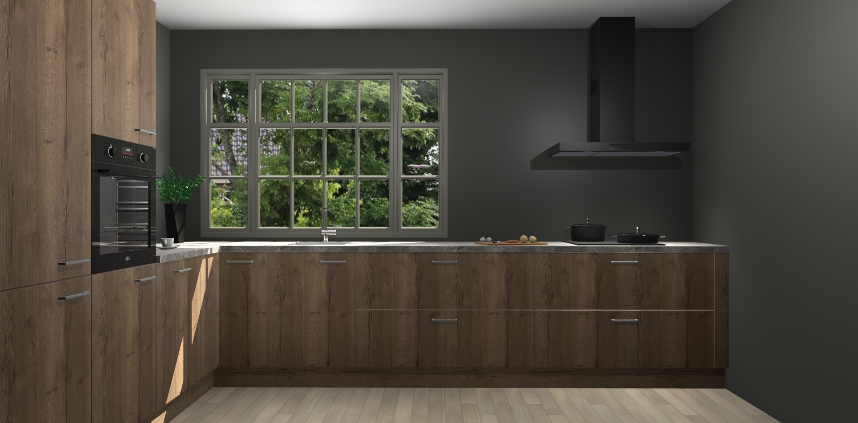 Kom dichtbij de perfecte keuken van uw dromen met de Chocolade Eiken keuken Malaga. Met een prachtige houtlook en eigentijds ontwerp, straalt deze keuken warmte en sfeer uit. Of u nu liefhebber bent van traditionele of moderne stijlen, er is genoeg ruimte om aan al uw behoeften te voldoen.