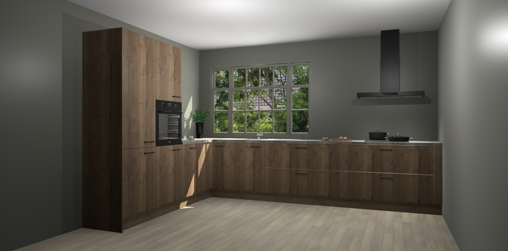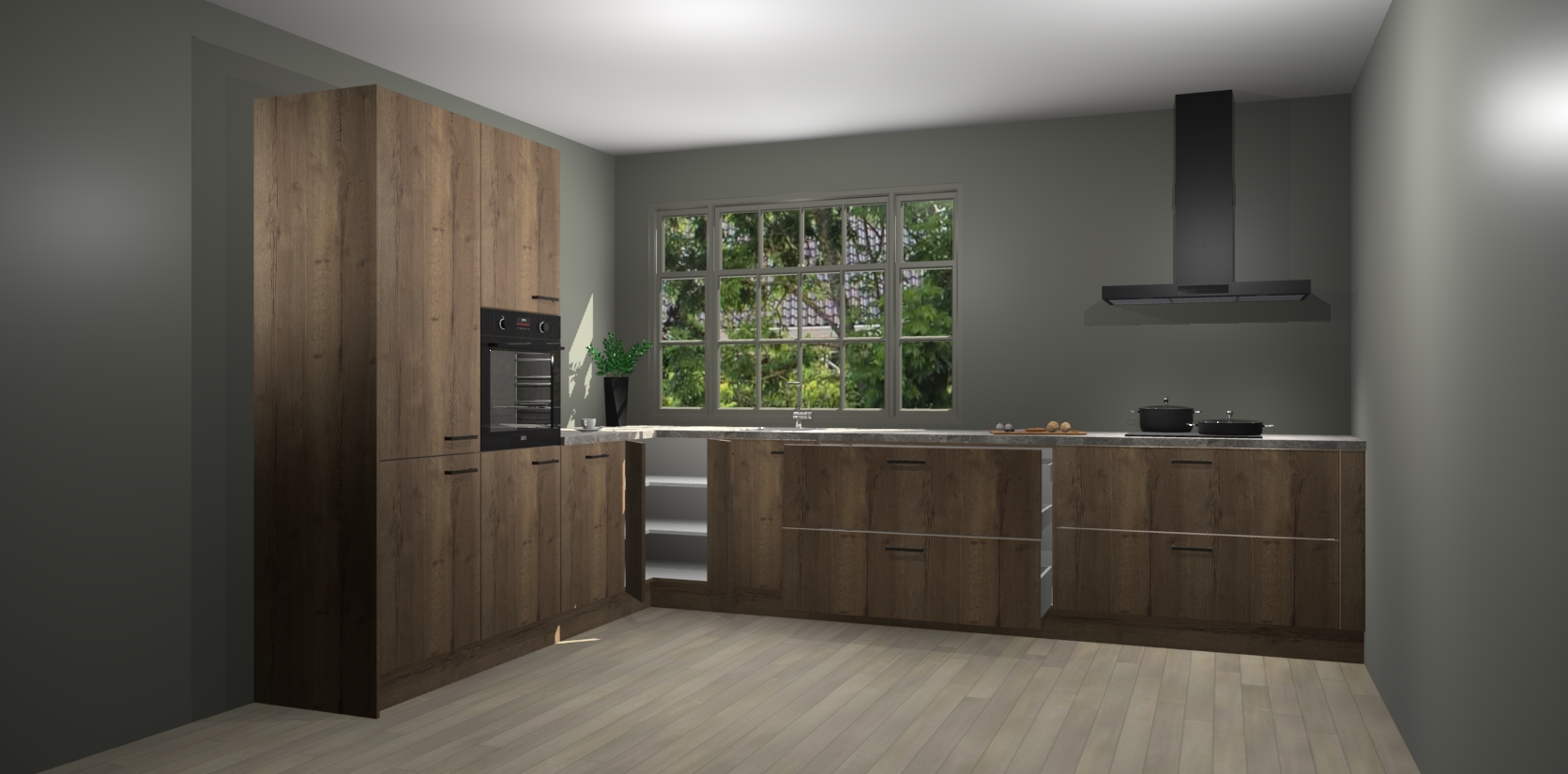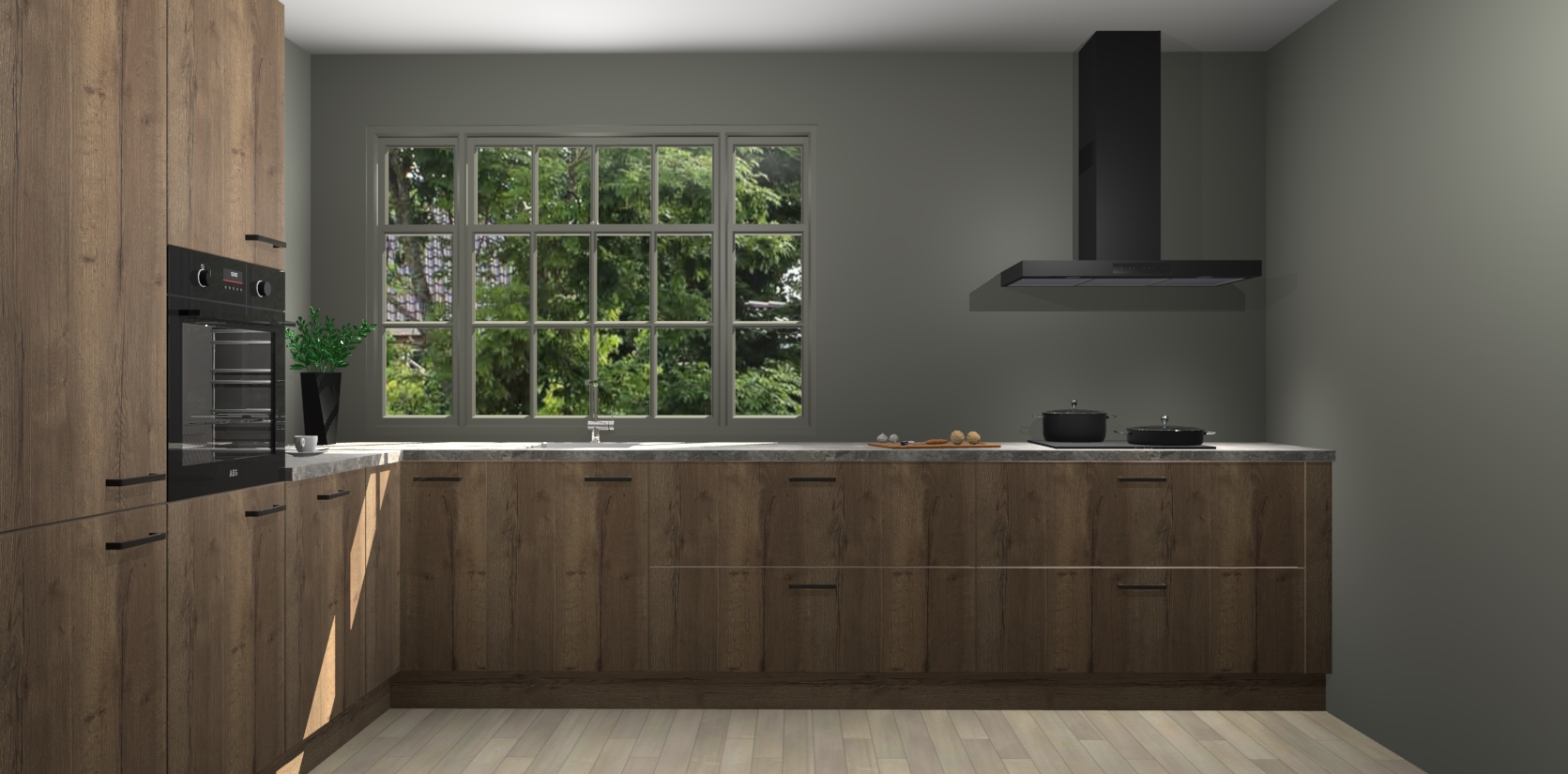 Kom dichtbij de perfecte keuken van uw dromen met de Chocolade Eiken keuken Malaga. Met een prachtige houtlook en eigentijds ontwerp, straalt deze keuken warmte en sfeer uit. Of u nu liefhebber bent van traditionele of moderne stijlen, er is genoeg ruimte om aan al uw behoeften te voldoen.