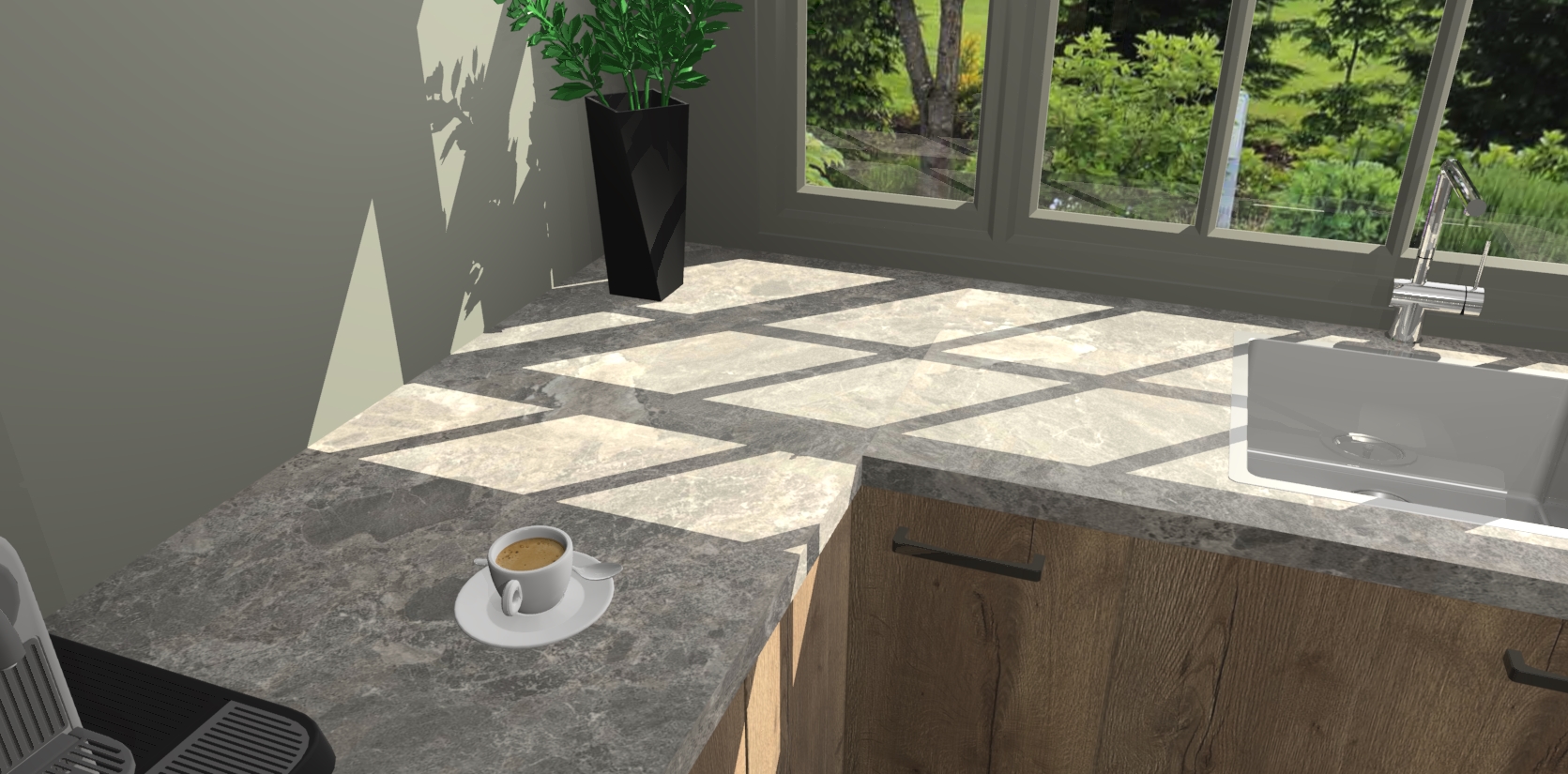 - Bij een hoekwerkblad zijn de hoeken in gevreesd en op maat gemaakt