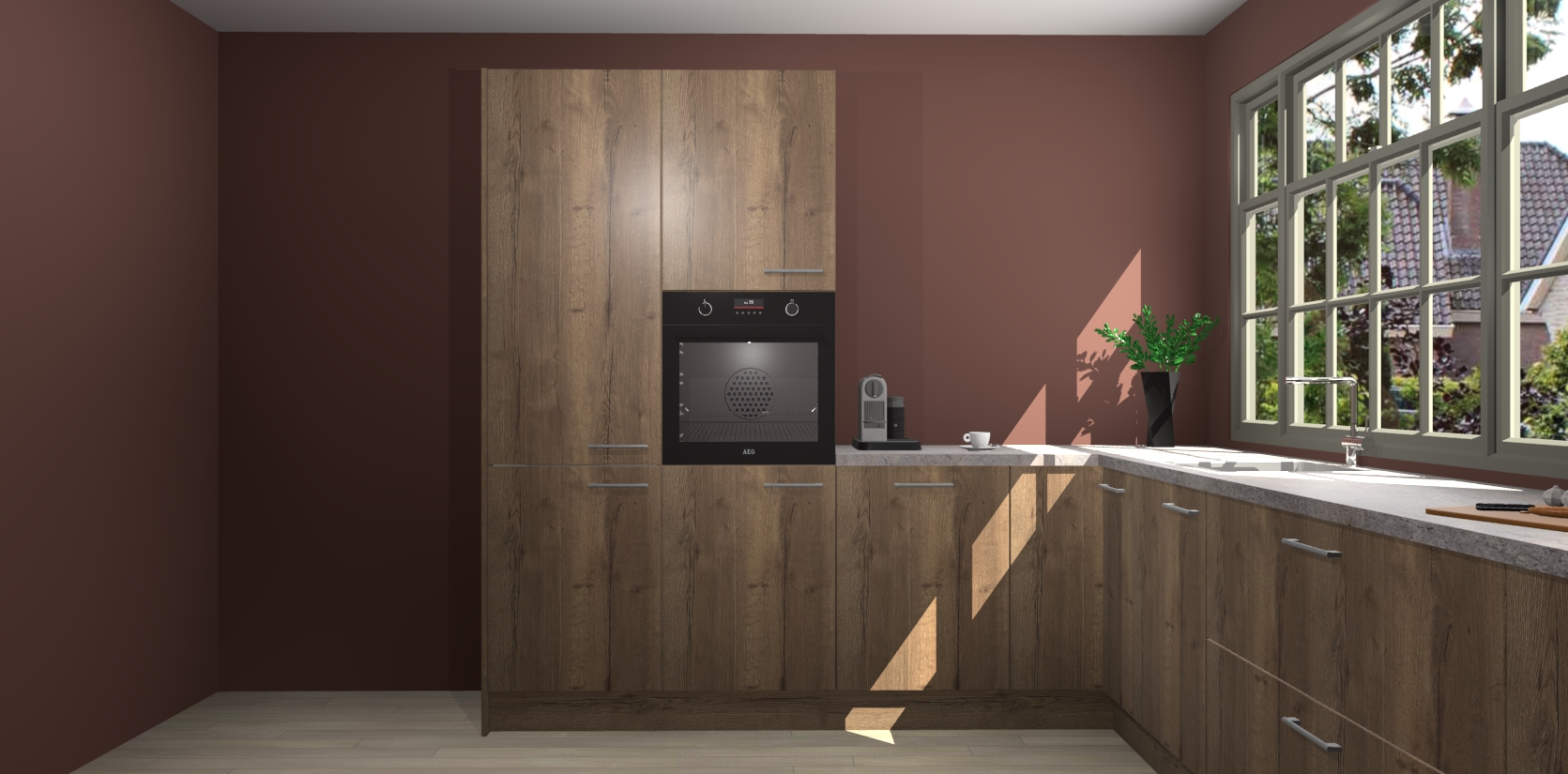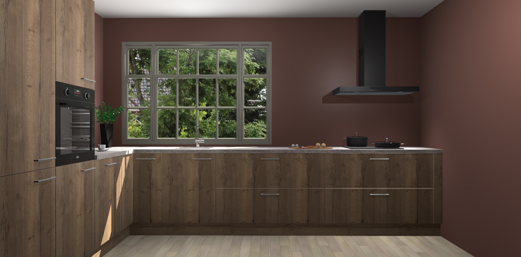 Heeft u nog apparatuur nodig? Geen probleem: de Chocolade Eiken keuken Malaga bevat vijf ingebouwde apparaten - een oven, inductiekookplaat, afzuigkap, vaatwasser en koelkast - die gemakkelijk kunnen worden bijgewerkt naar AEG na bestelling. En als dat nog niet genoeg is; onze kasten worden pre-geassembleerd geleverd en zijn verkrijgbaar tegen een vastgeroeste lage prijs! U hoeft nooit meer te zoeken naar goede kwaliteit en service want onze producten hebben echt Duitse kwaliteit.