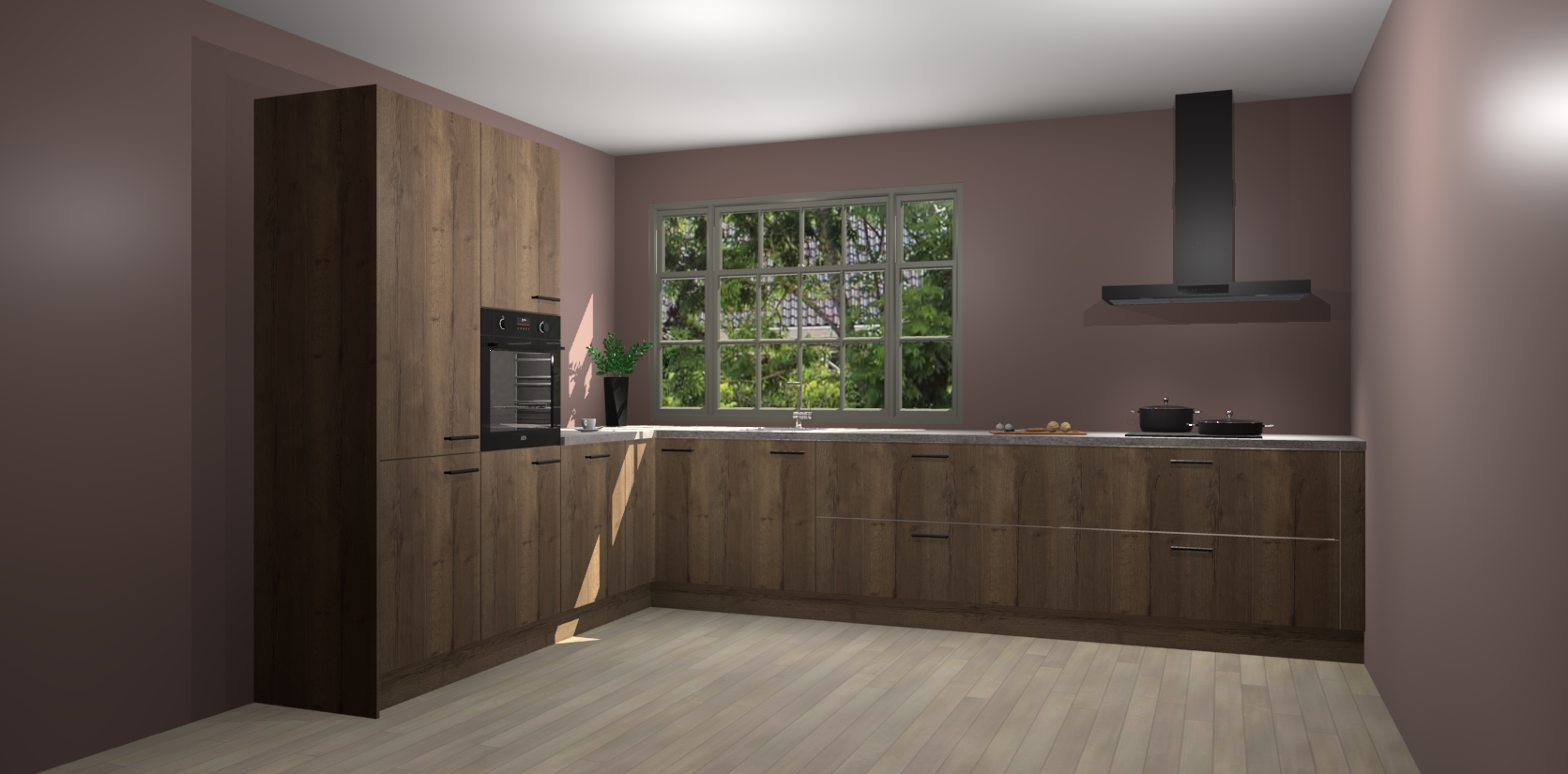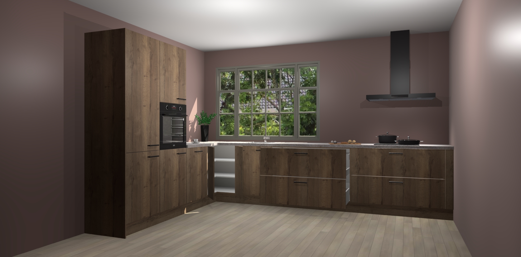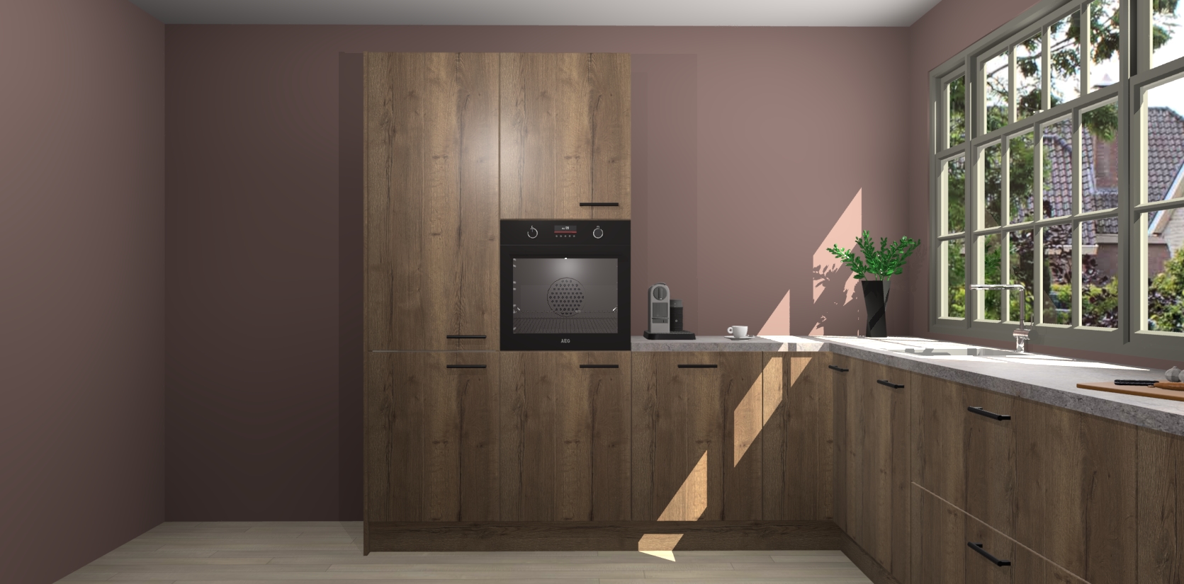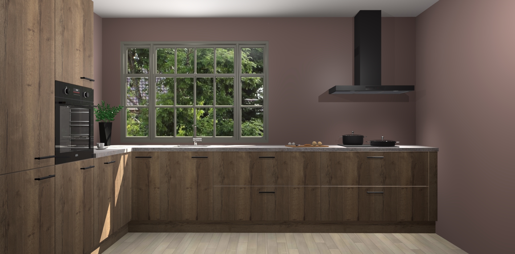 Kom dichtbij de perfecte keuken van uw dromen met de Chocolade Eiken keuken Malaga. Met een prachtige houtlook en eigentijds ontwerp, straalt deze keuken warmte en sfeer uit. Of u nu liefhebber bent van traditionele of moderne stijlen, er is genoeg ruimte om aan al uw behoeften te voldoen.