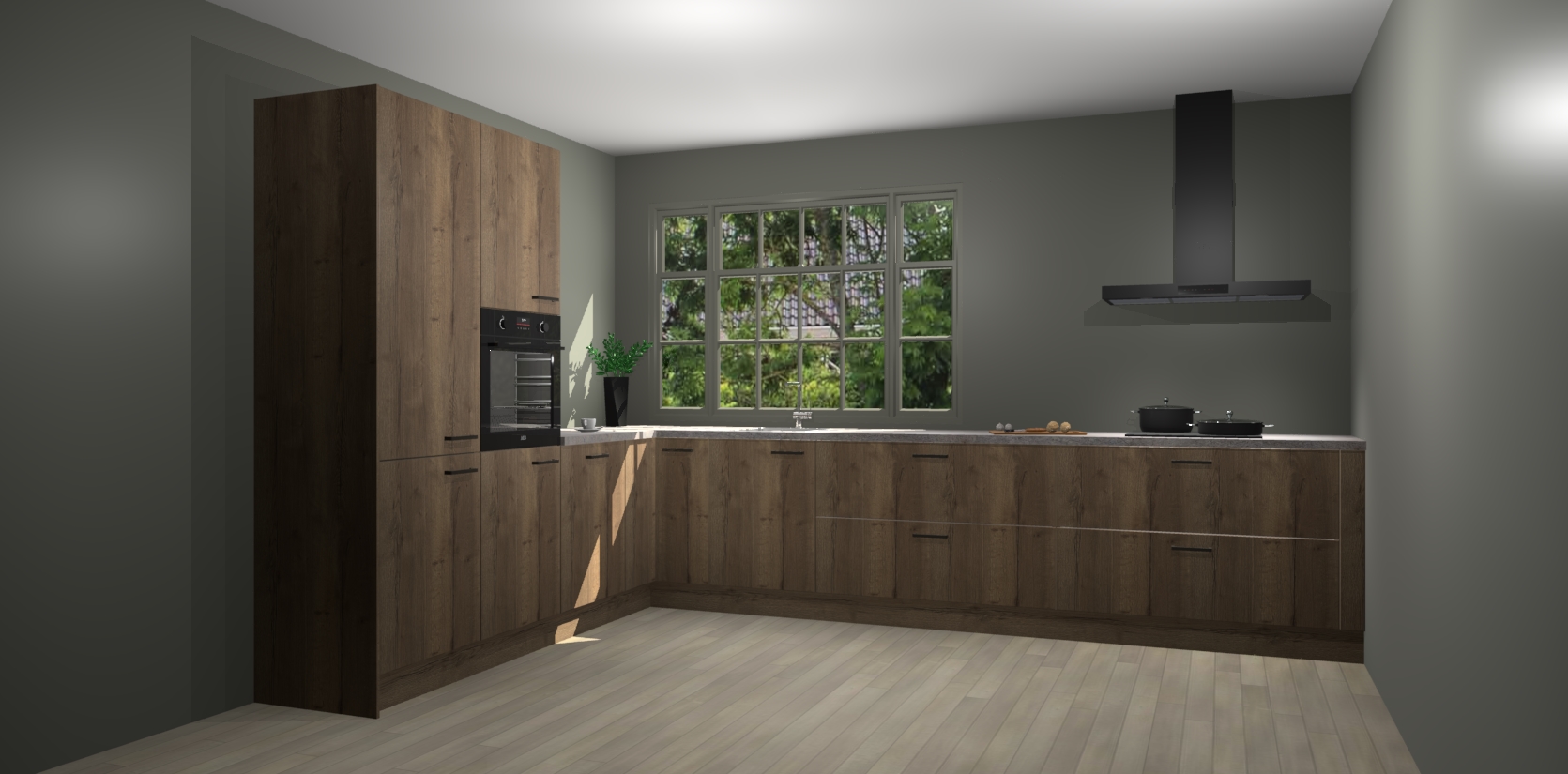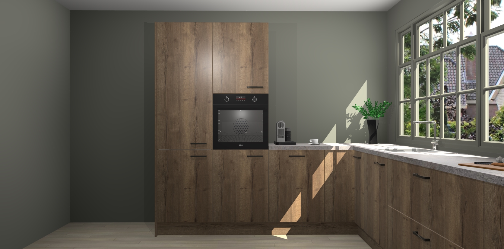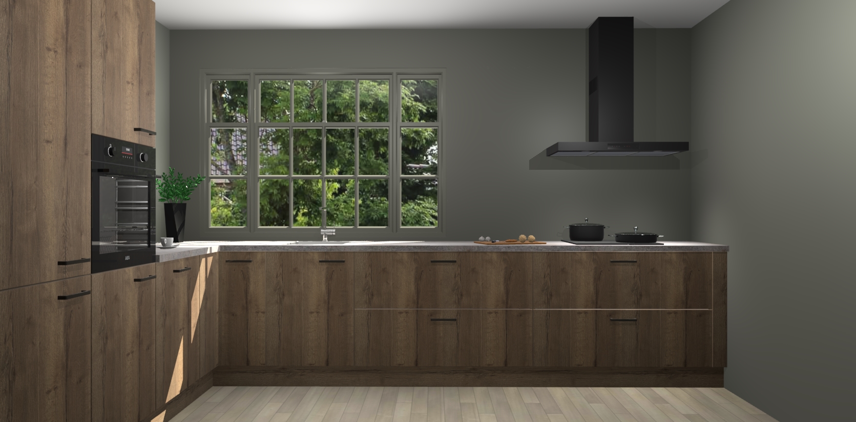 Kom dichtbij de perfecte keuken van uw dromen met de Chocolade Eiken keuken Malaga. Met een prachtige houtlook en eigentijds ontwerp, straalt deze keuken warmte en sfeer uit. Of u nu liefhebber bent van traditionele of moderne stijlen, er is genoeg ruimte om aan al uw behoeften te voldoen.