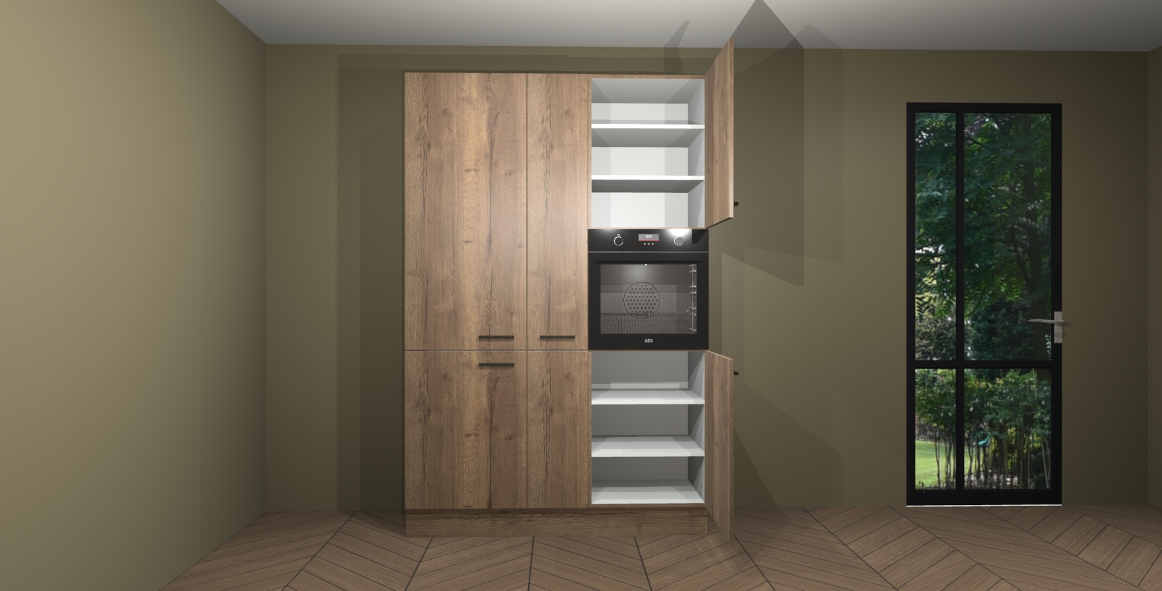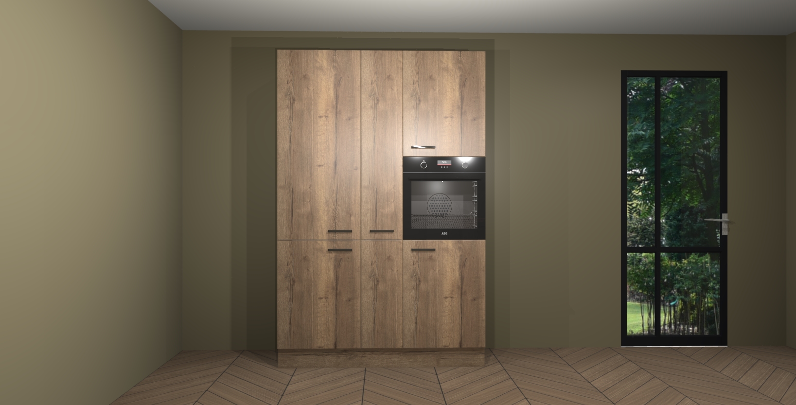 Met een modern, tijdloos design en ruime opslagruimte, zult u zich in no-time thuis voelen in uw nieuwe keuken. Uw leven wordt eenvoudiger met de soft-close deuren die voor het ultieme stille comfort zorgen - geen geluid dat u stoort terwijl u kookt. Ook is de keuken voorzien van 5 ingebouwde apparaten: een oven, inductie kookplaat, afzuigkap, vaatwasser en koelkast. Deze kunnen gemakkelijk na bestelling worden bijgewerkt naar AEG - waardoor uw luxe ervaring compleet is.