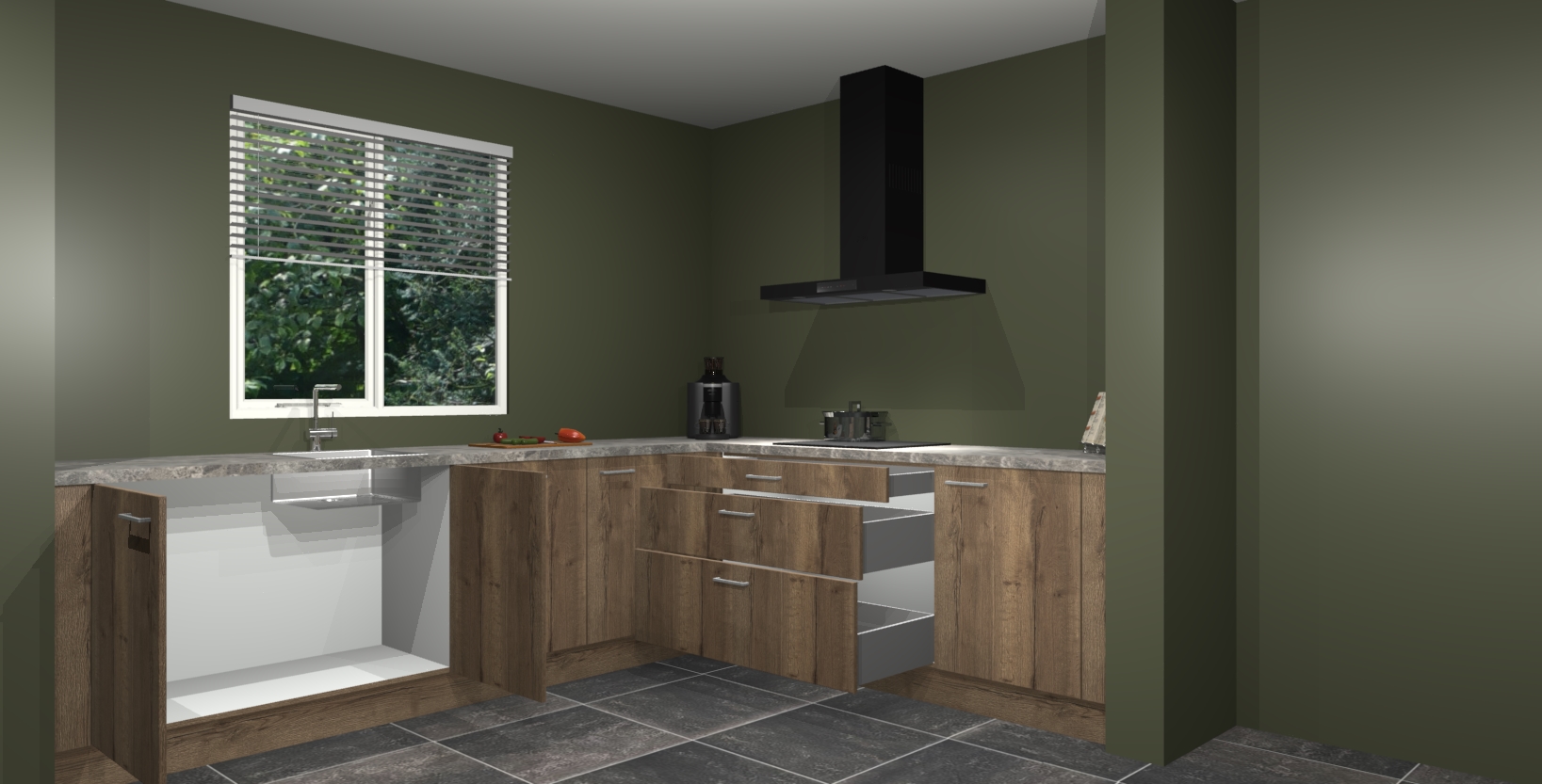 - Bij een hoekwerkblad zijn de hoeken in gevreesd en op maat gemaakt