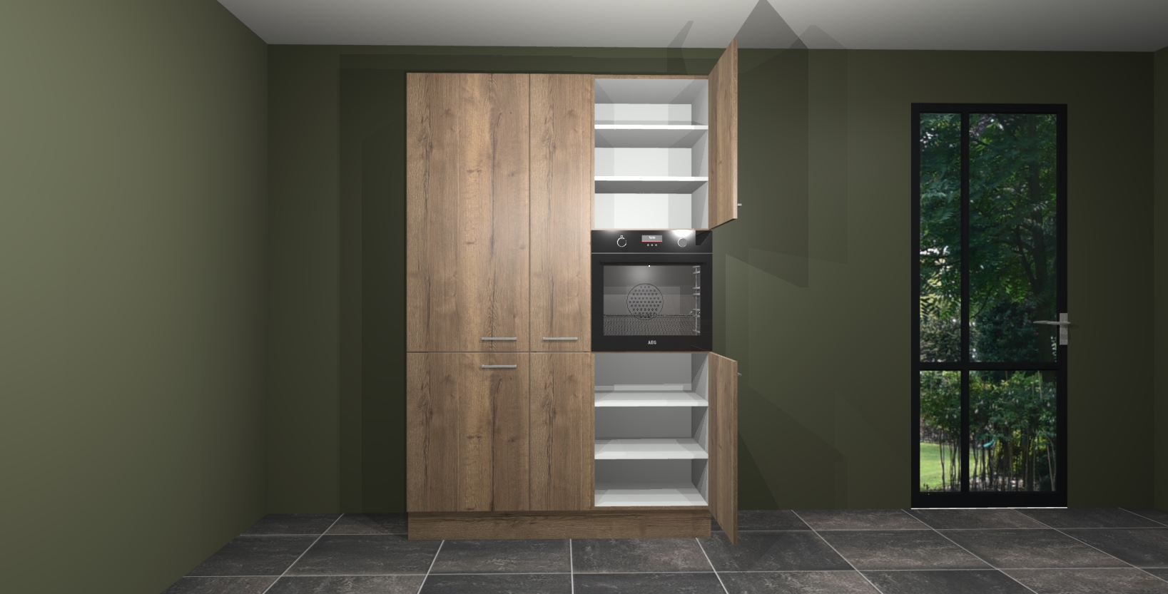 Met een modern, tijdloos design en ruime opslagruimte, zult u zich in no-time thuis voelen in uw nieuwe keuken. Uw leven wordt eenvoudiger met de soft-close deuren die voor het ultieme stille comfort zorgen - geen geluid dat u stoort terwijl u kookt. Ook is de keuken voorzien van 5 ingebouwde apparaten: een oven, inductie kookplaat, afzuigkap, vaatwasser en koelkast. Deze kunnen gemakkelijk na bestelling worden bijgewerkt naar AEG - waardoor uw luxe ervaring compleet is.