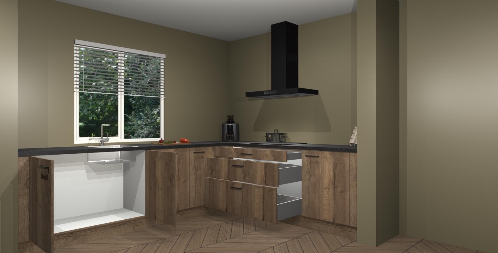 - Bij een hoekwerkblad zijn de hoeken in gevreesd en op maat gemaakt