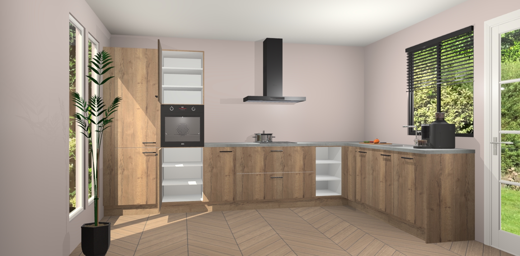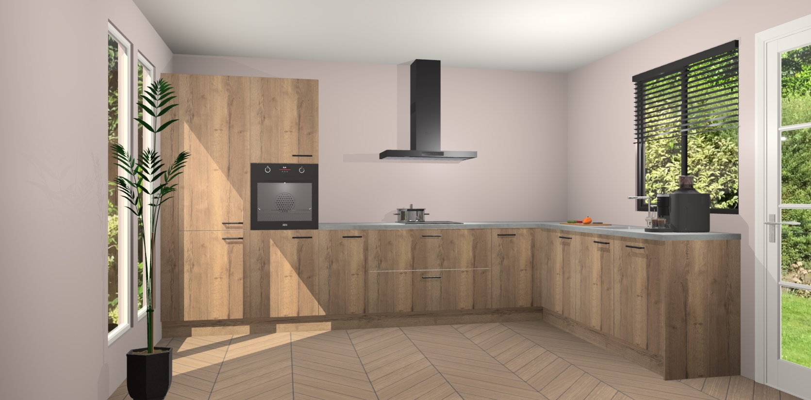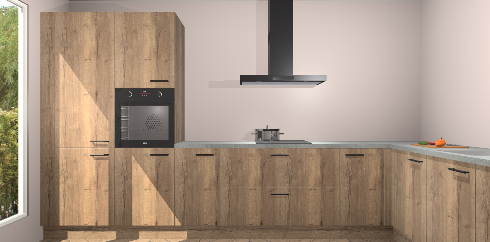 Met een modern, tijdloos design en ruime opslagruimte, zult u zich in no-time thuis voelen in uw nieuwe keuken. Uw leven wordt eenvoudiger met de soft-close deuren die voor het ultieme stille comfort zorgen - geen geluid dat u stoort terwijl u kookt. Ook is de keuken voorzien van 5 ingebouwde apparaten: een oven, inductie kookplaat, afzuigkap, vaatwasser en koelkast. Deze kunnen gemakkelijk na bestelling worden bijgewerkt naar AEG - waardoor uw luxe ervaring compleet is.