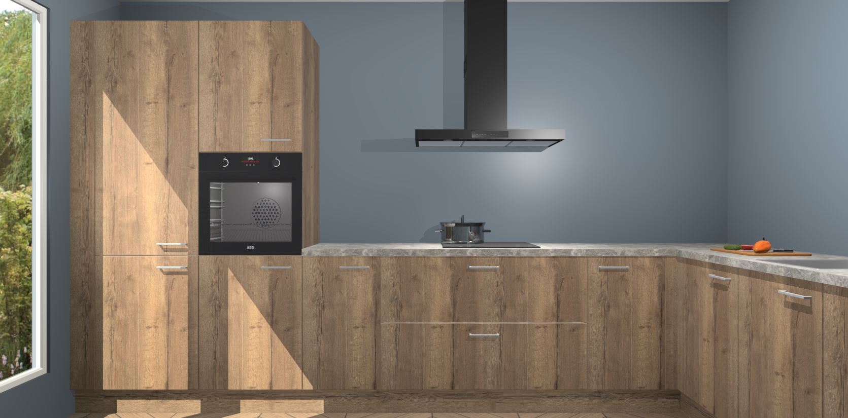 Met een modern, tijdloos design en ruime opslagruimte, zult u zich in no-time thuis voelen in uw nieuwe keuken. Uw leven wordt eenvoudiger met de soft-close deuren die voor het ultieme stille comfort zorgen - geen geluid dat u stoort terwijl u kookt. Ook is de keuken voorzien van 5 ingebouwde apparaten: een oven, inductie kookplaat, afzuigkap, vaatwasser en koelkast. Deze kunnen gemakkelijk na bestelling worden bijgewerkt naar AEG - waardoor uw luxe ervaring compleet is.