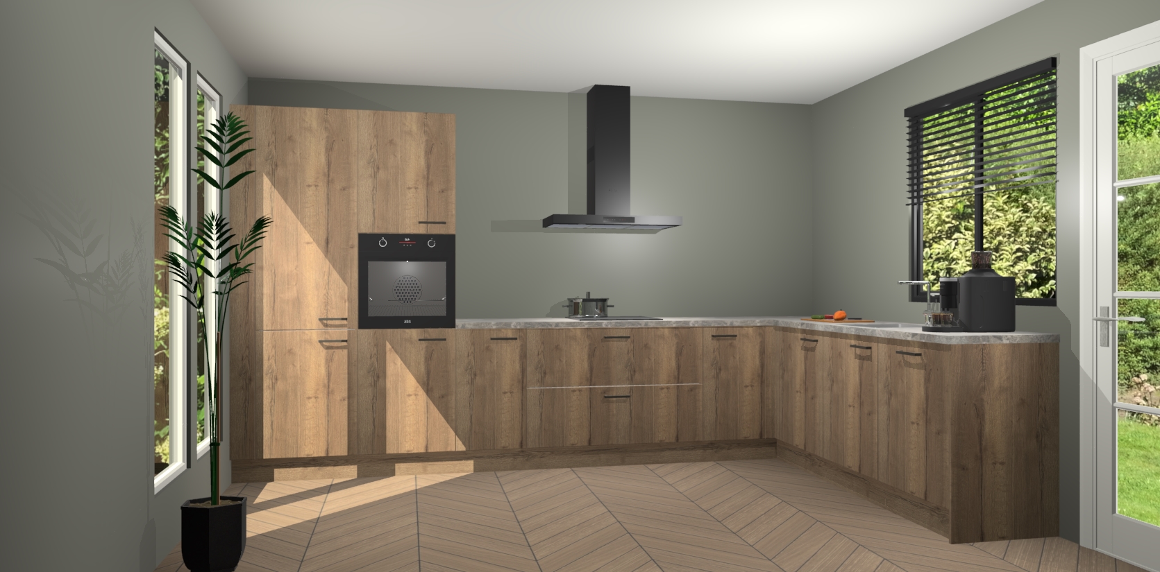 Met een modern, tijdloos design en ruime opslagruimte, zult u zich in no-time thuis voelen in uw nieuwe keuken. Uw leven wordt eenvoudiger met de soft-close deuren die voor het ultieme stille comfort zorgen - geen geluid dat u stoort terwijl u kookt. Ook is de keuken voorzien van 5 ingebouwde apparaten: een oven, inductie kookplaat, afzuigkap, vaatwasser en koelkast. Deze kunnen gemakkelijk na bestelling worden bijgewerkt naar AEG - waardoor uw luxe ervaring compleet is.