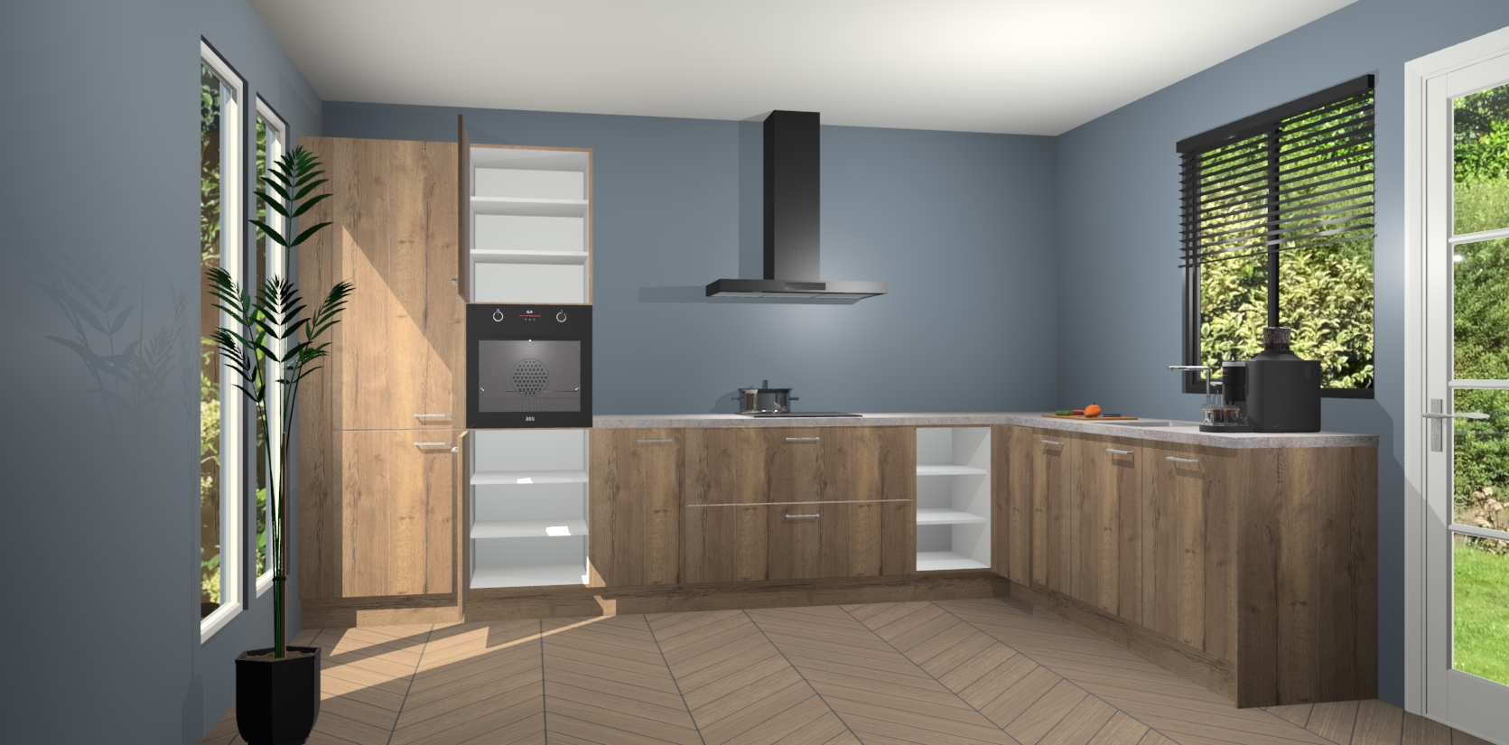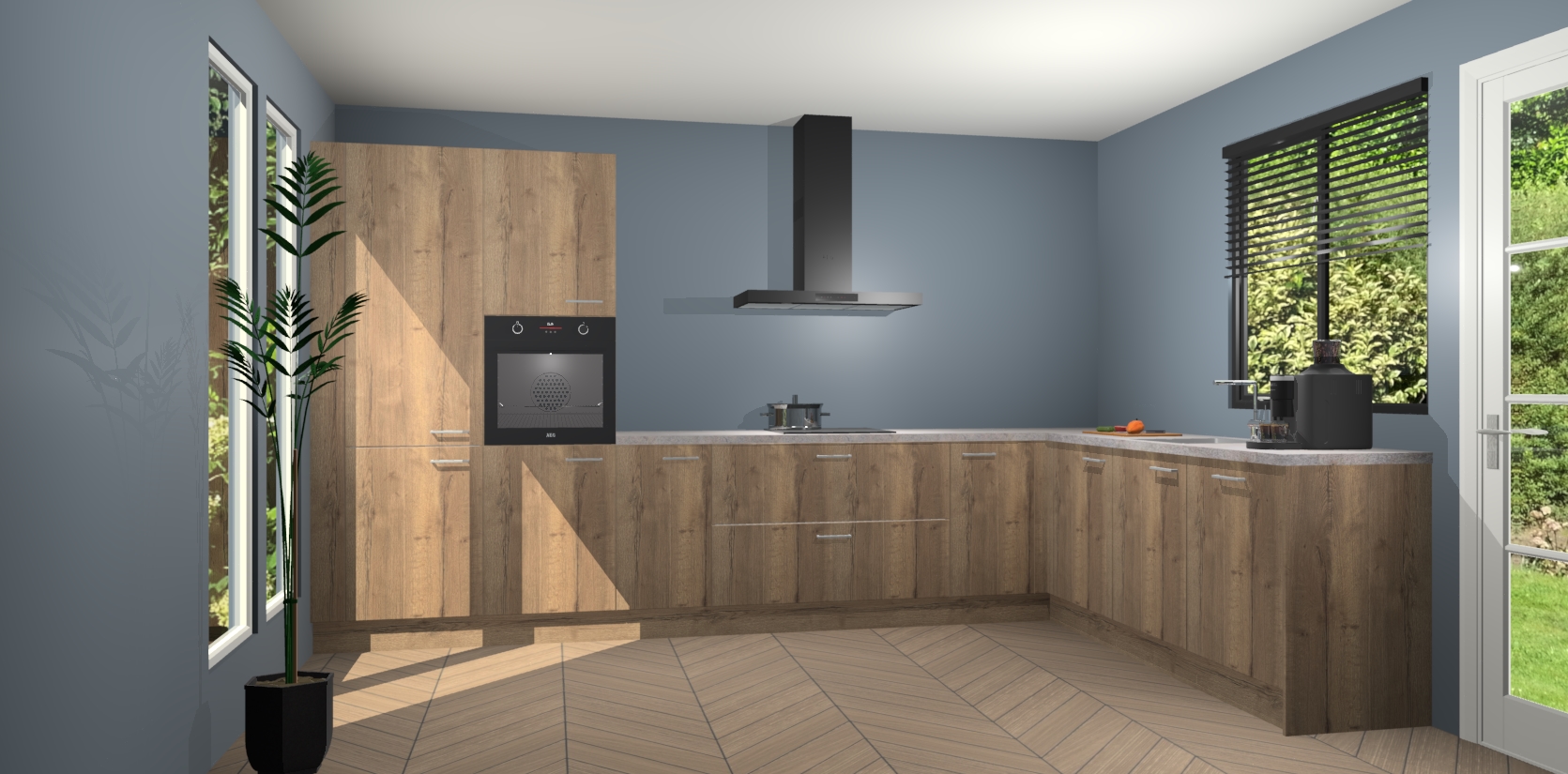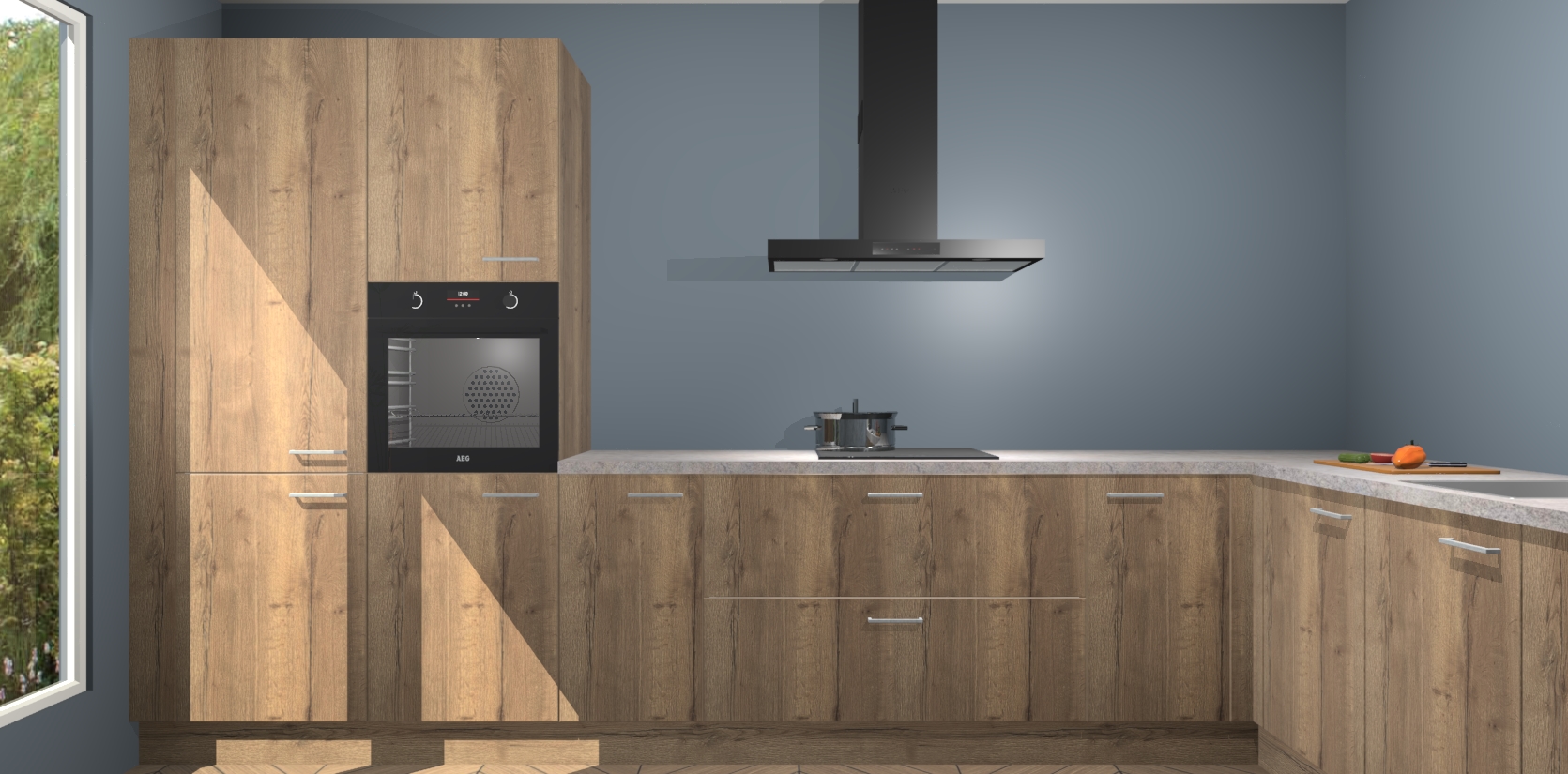 Met een modern, tijdloos design en ruime opslagruimte, zult u zich in no-time thuis voelen in uw nieuwe keuken. Uw leven wordt eenvoudiger met de soft-close deuren die voor het ultieme stille comfort zorgen - geen geluid dat u stoort terwijl u kookt. Ook is de keuken voorzien van 5 ingebouwde apparaten: een oven, inductie kookplaat, afzuigkap, vaatwasser en koelkast. Deze kunnen gemakkelijk na bestelling worden bijgewerkt naar AEG - waardoor uw luxe ervaring compleet is.