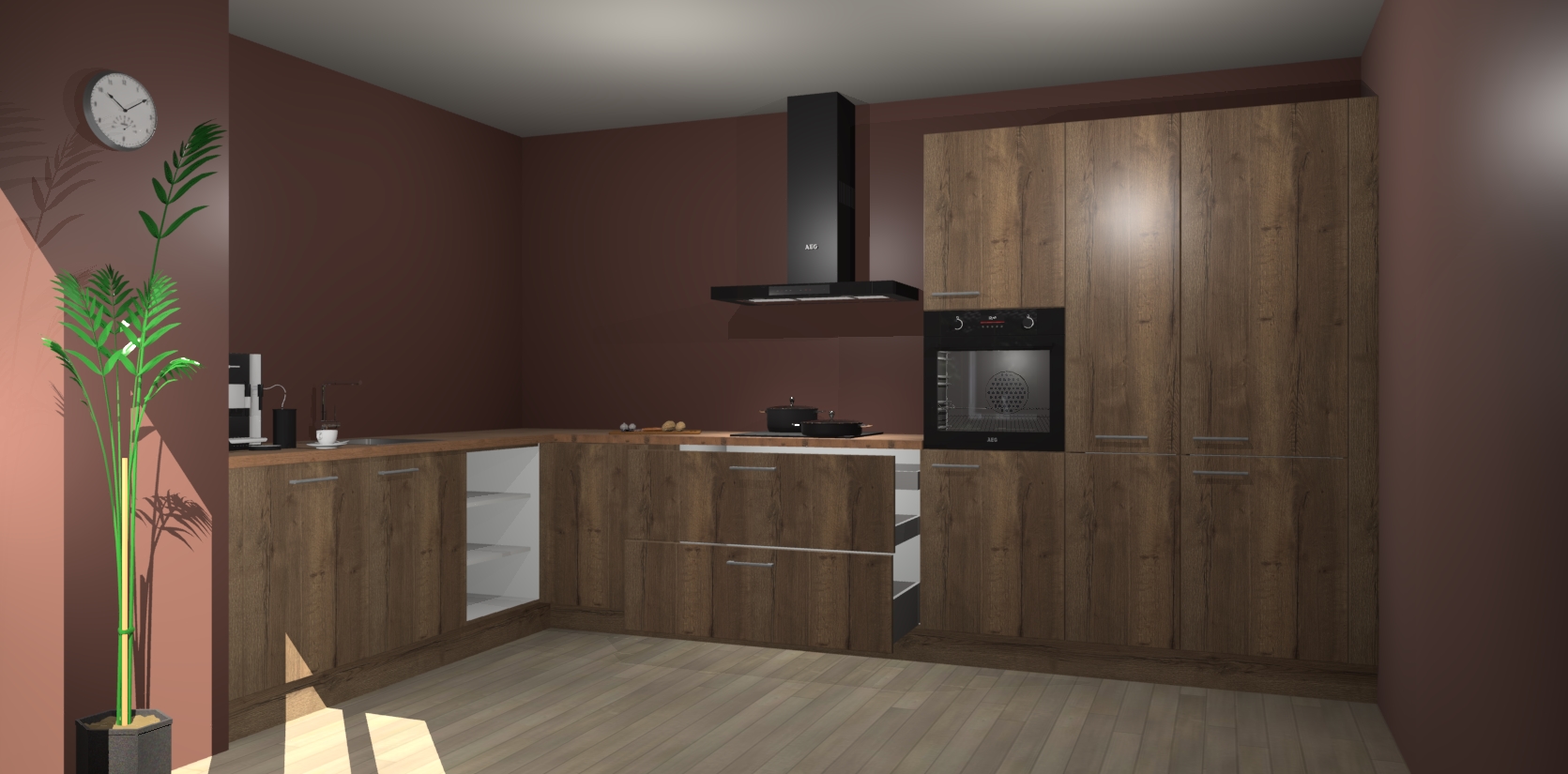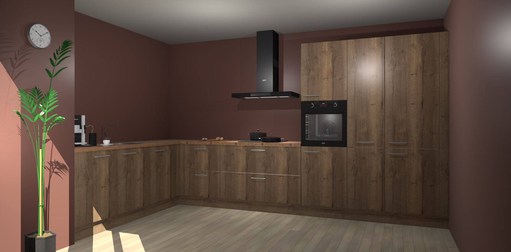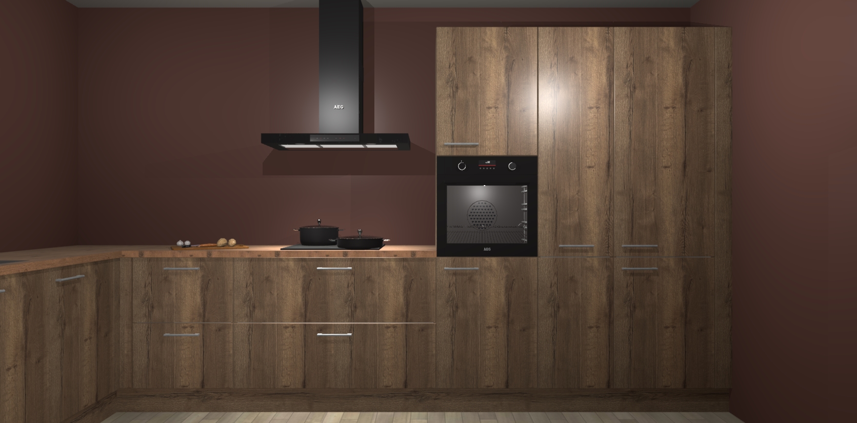 Welkom bij de chocolade eiken keuken Nuuk. Deze prachtige keuken zal de komende jaren het middelpunt van de belangstelling in uw huis zijn. Uitgerust met vijf inbouwapparaten komt u nooit kookgereedschap tekort.