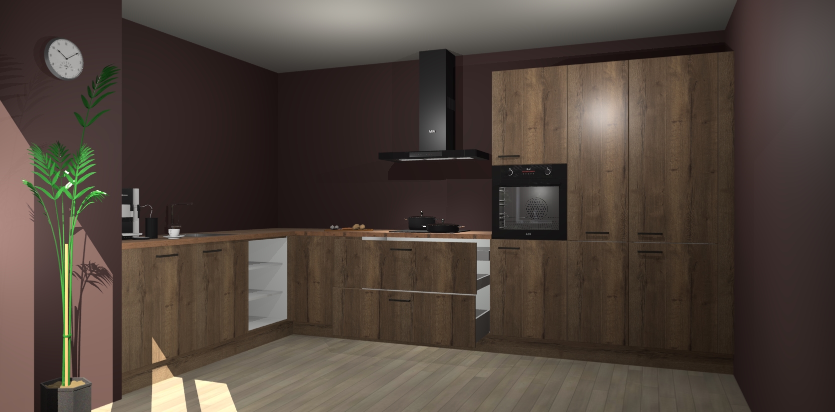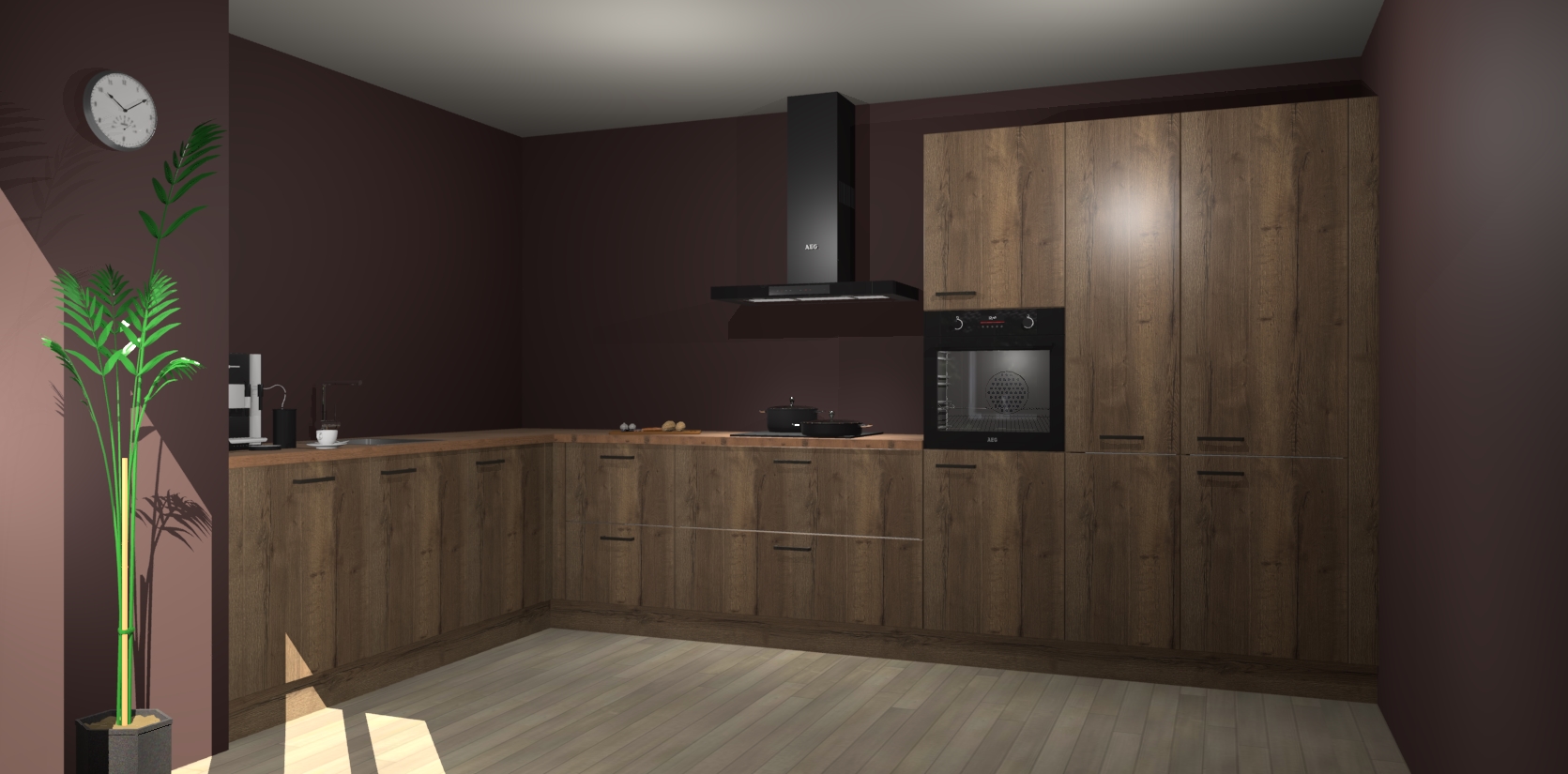 Welkom bij de chocolade eiken keuken Nuuk. Deze prachtige keuken zal de komende jaren het middelpunt van de belangstelling in uw huis zijn. Uitgerust met vijf inbouwapparaten komt u nooit kookgereedschap tekort.