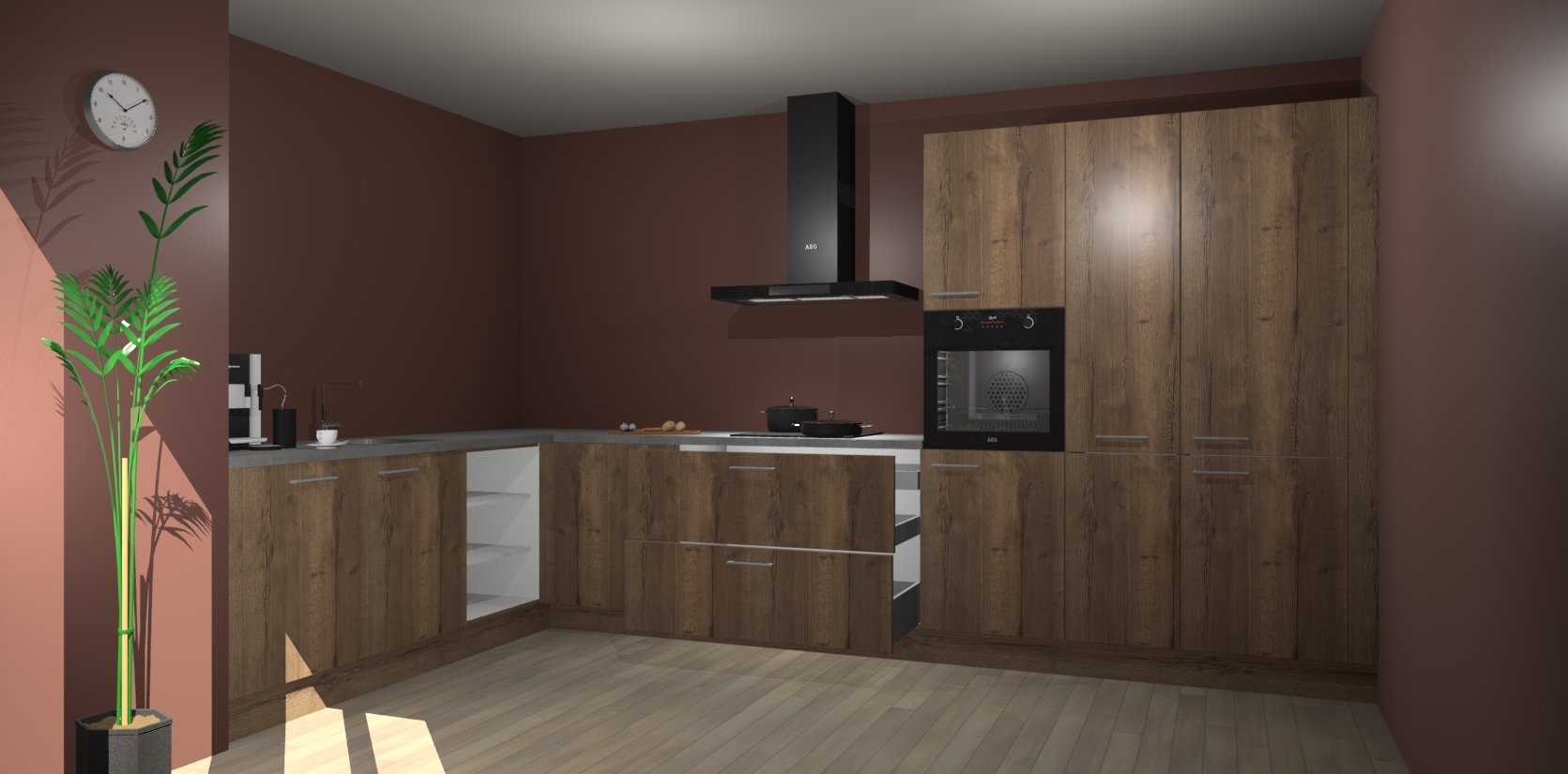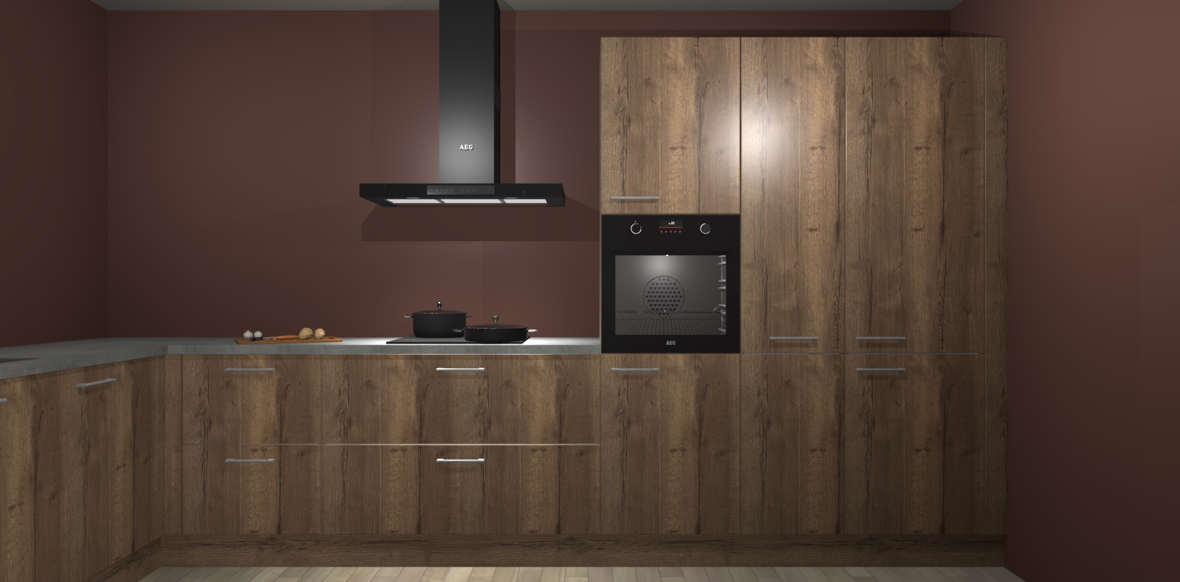 Welkom bij de chocolade eiken keuken Nuuk. Deze prachtige keuken zal de komende jaren het middelpunt van de belangstelling in uw huis zijn. Uitgerust met vijf inbouwapparaten komt u nooit kookgereedschap tekort.