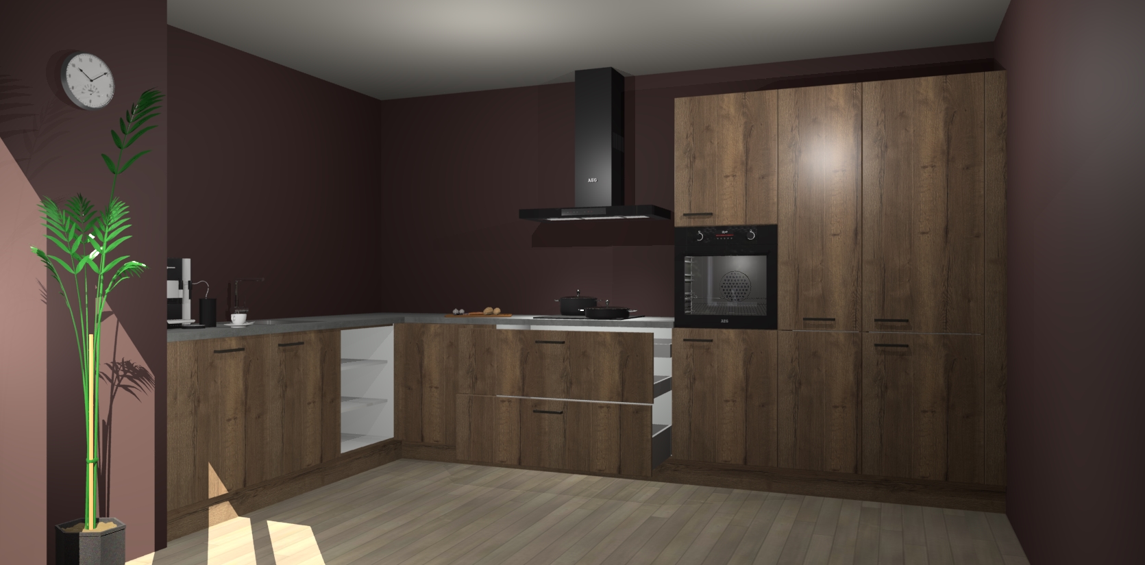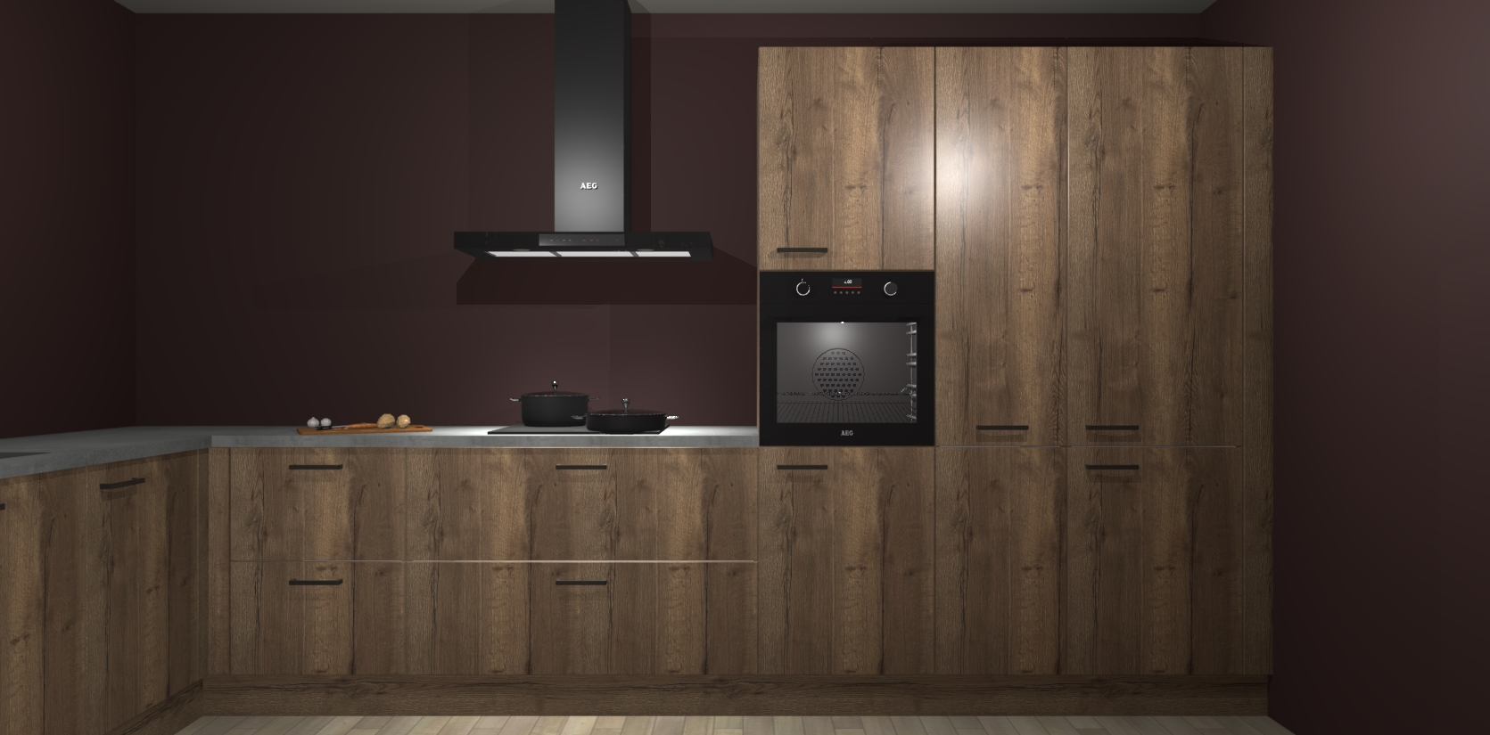 Welkom bij de chocolade eiken keuken Nuuk. Deze prachtige keuken zal de komende jaren het middelpunt van de belangstelling in uw huis zijn. Uitgerust met vijf inbouwapparaten komt u nooit kookgereedschap tekort.