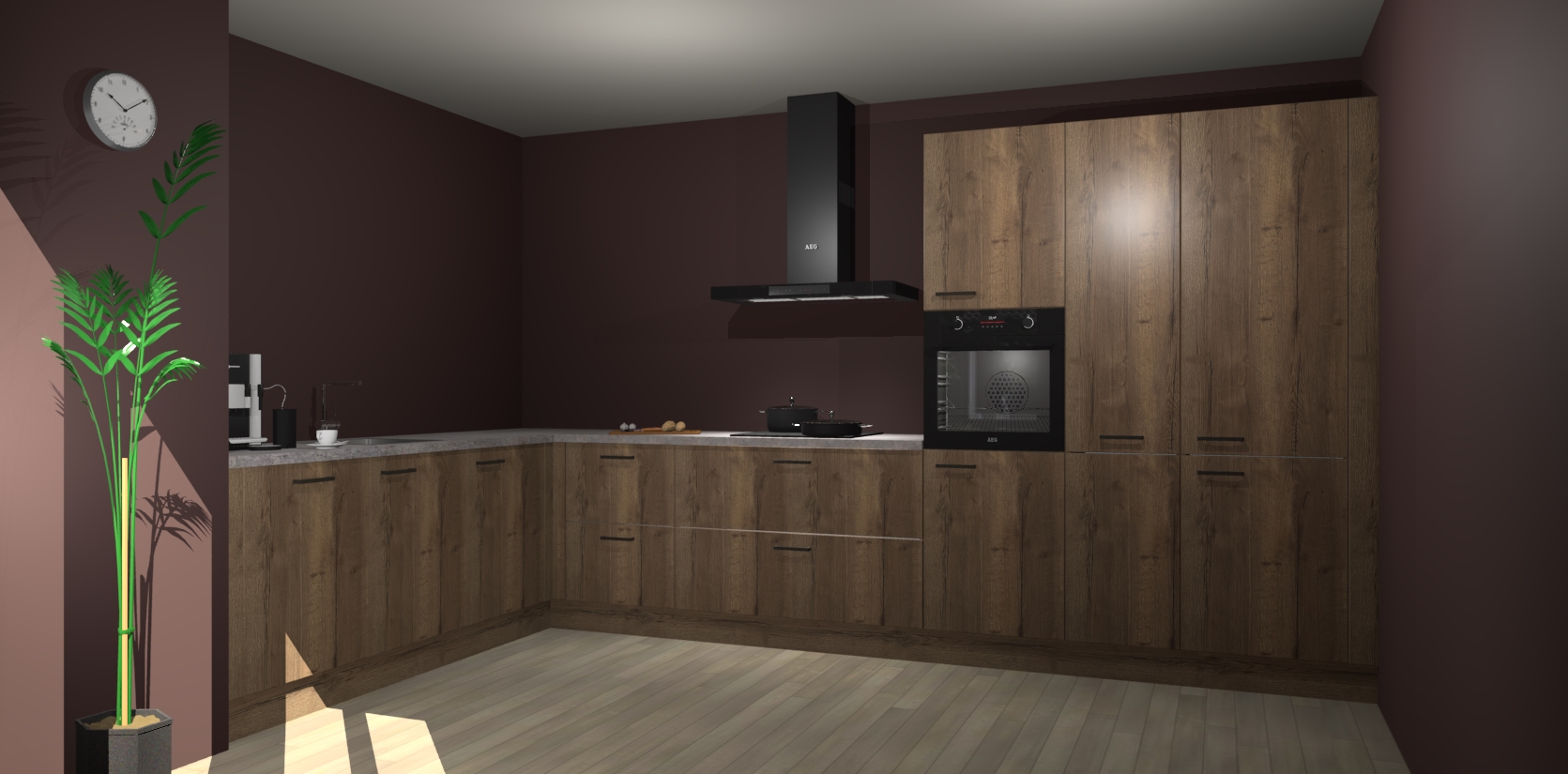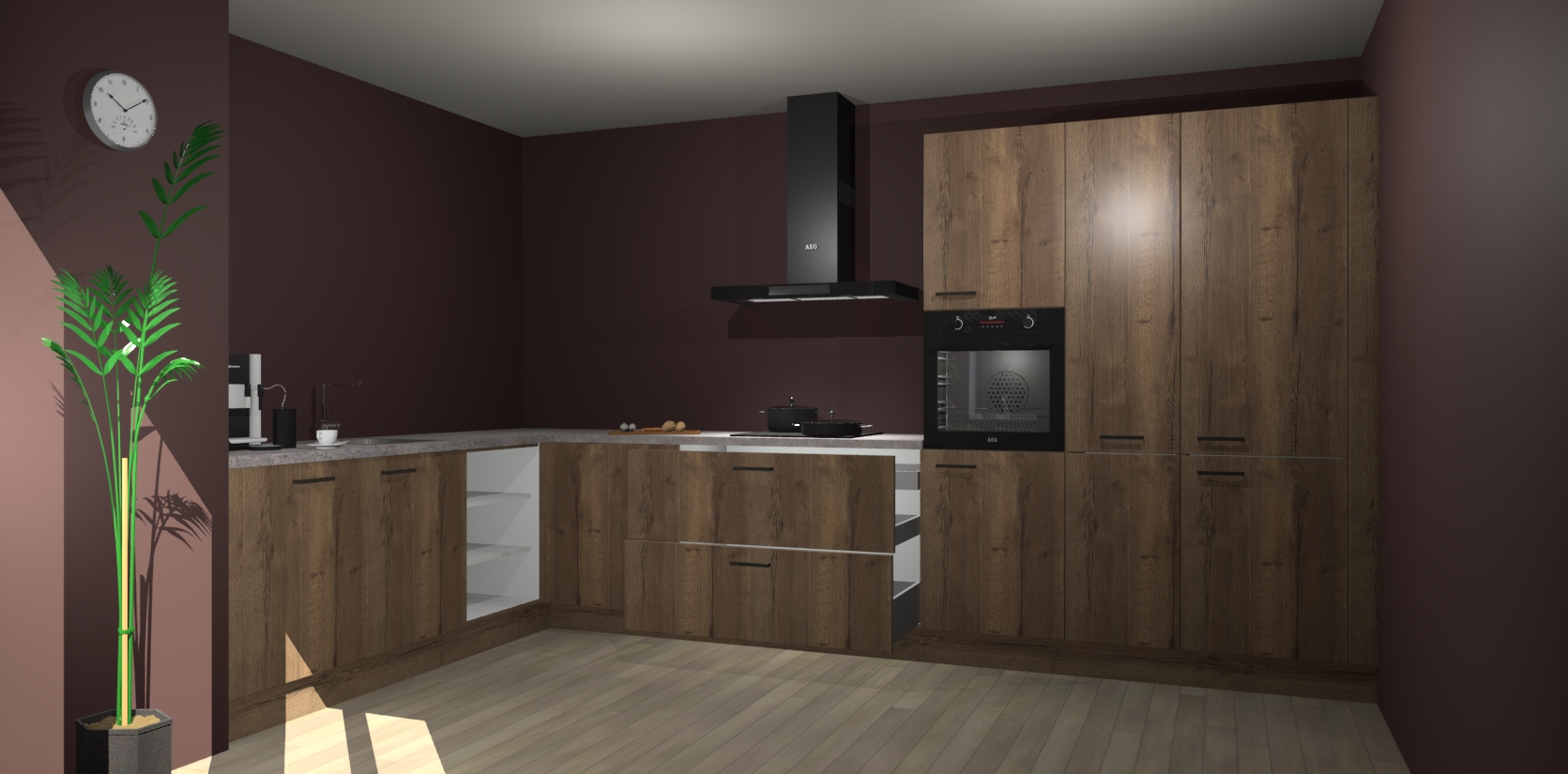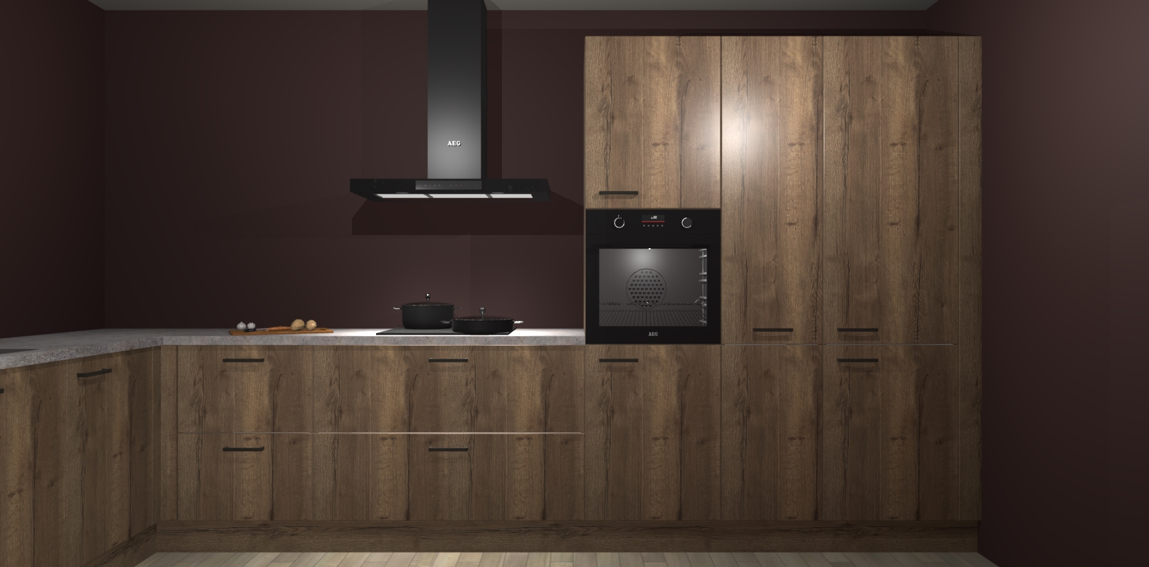 Welkom bij de chocolade eiken keuken Nuuk. Deze prachtige keuken zal de komende jaren het middelpunt van de belangstelling in uw huis zijn. Uitgerust met vijf inbouwapparaten komt u nooit kookgereedschap tekort.