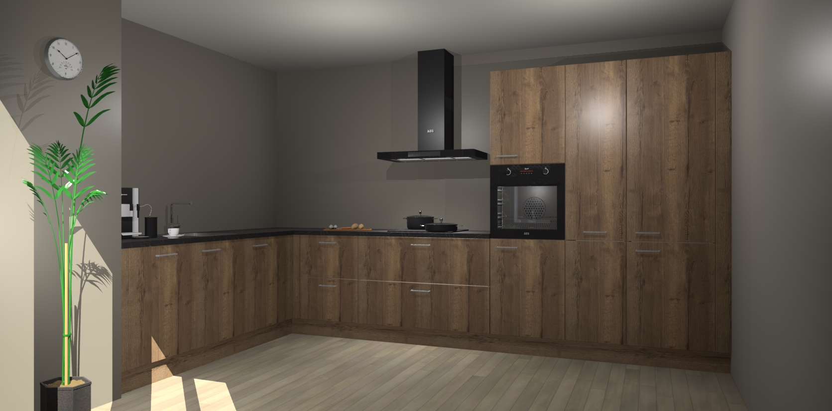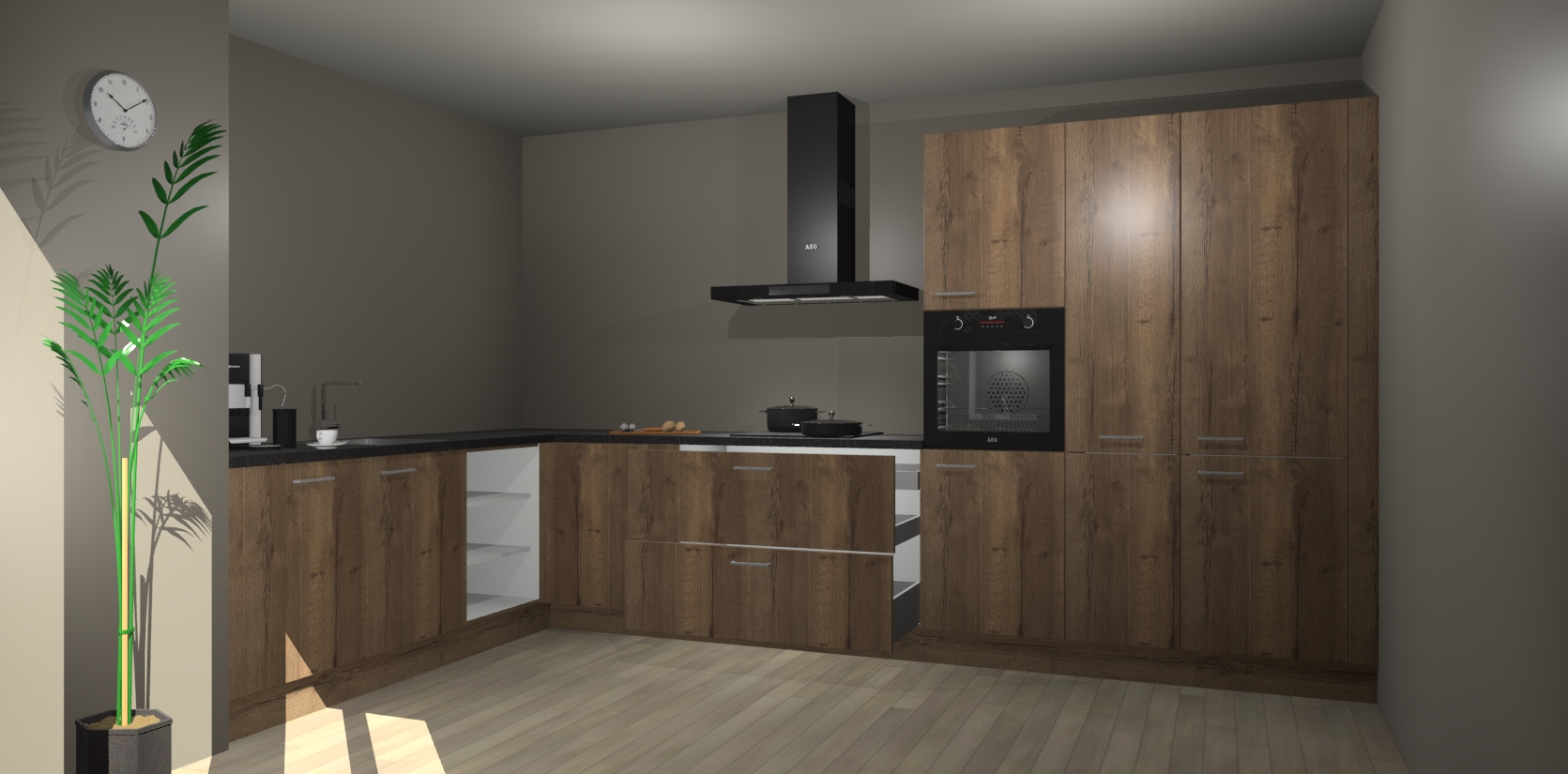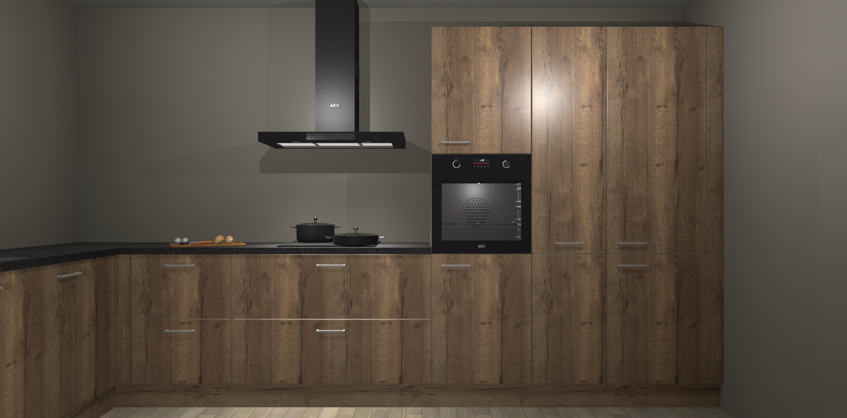 Welkom bij de chocolade eiken keuken Nuuk. Deze prachtige keuken zal de komende jaren het middelpunt van de belangstelling in uw huis zijn. Uitgerust met vijf inbouwapparaten komt u nooit kookgereedschap tekort.