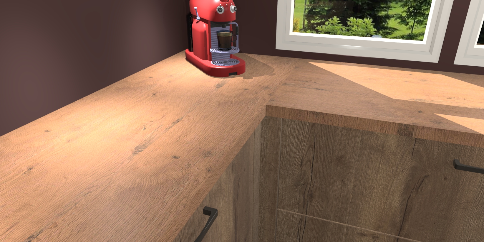 - Bij een hoekwerkblad zijn de hoeken in gevreesd en op maat gemaakt