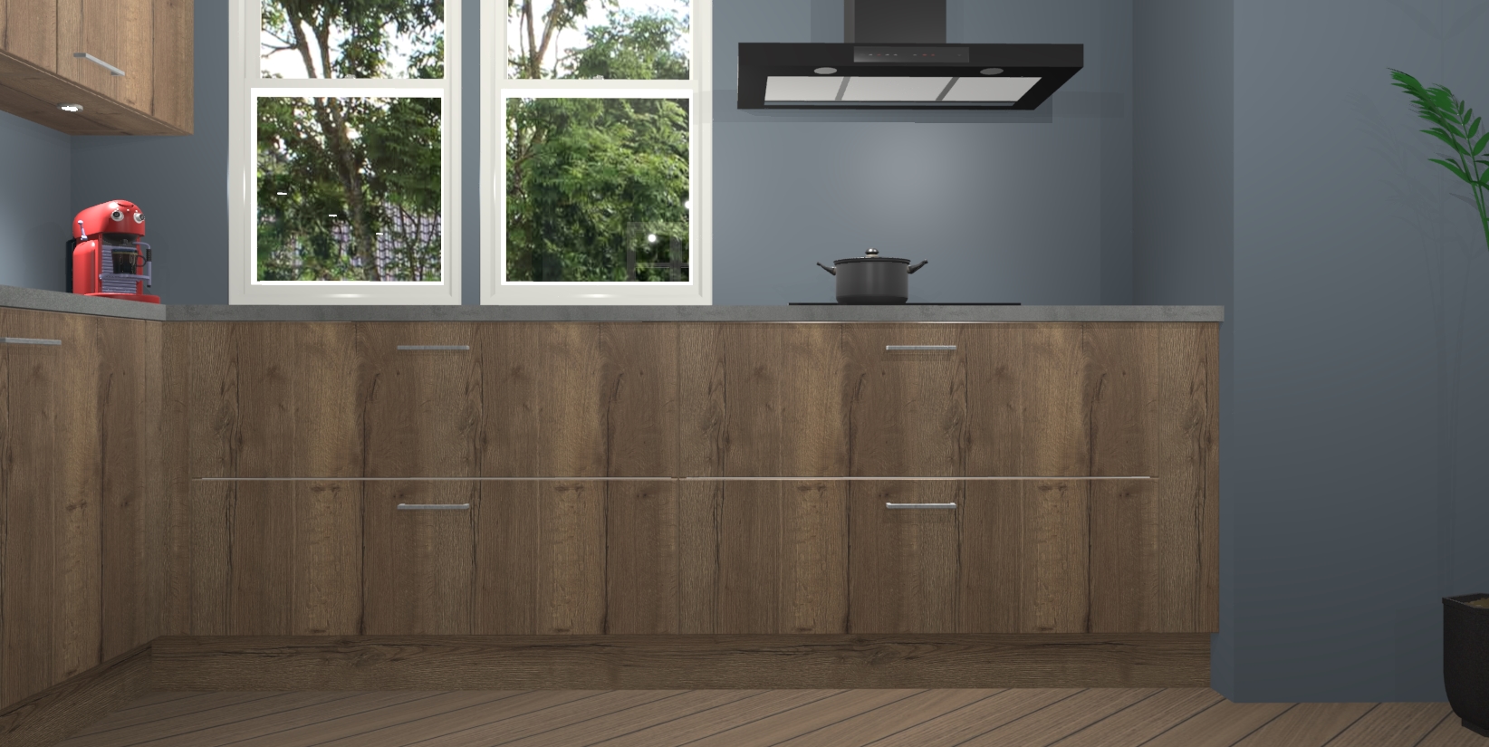 Inclusief plinten, stelpoten en werkblad