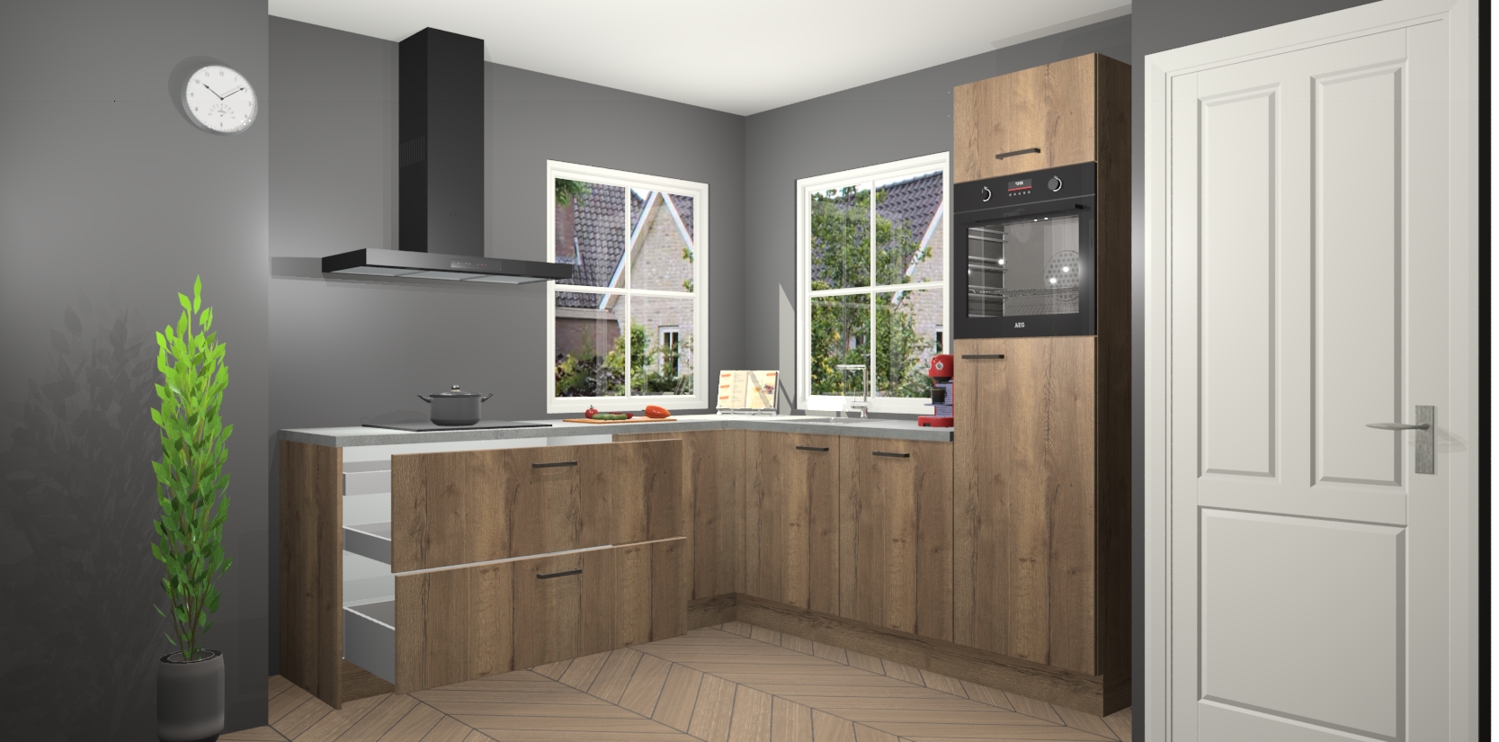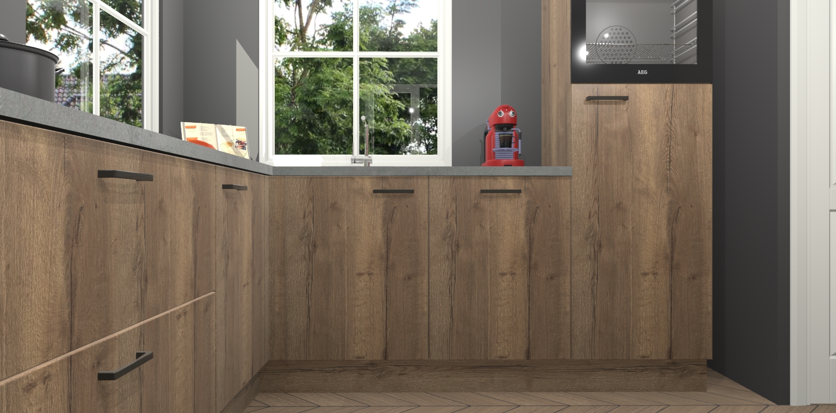 De Chocolade Eiken keuken Pai bevat vijf essentiële inbouwapparaten - een oven, inductiekookplaat, afzuigkap, vaatwasser en koelkast - zodat u er na levering meteen in kunt. Voor de slimme kopers die weten dat apparaten vaak het verschil kunnen maken tussen functioneel en luxueus, bieden we eenvoudige upgradeopties naar AEG, van oven naar combimagnetron na bestelling of naar een kookplaat met geïntrigeerde afzuiging. En met onze vaste lage prijs en snelle levering binnen zeven weken vanaf de orderbevestiging hoeft u zich geen zorgen te maken over verborgen kosten of lange levertijden die uw droomkeuken kunnen vertragen.
