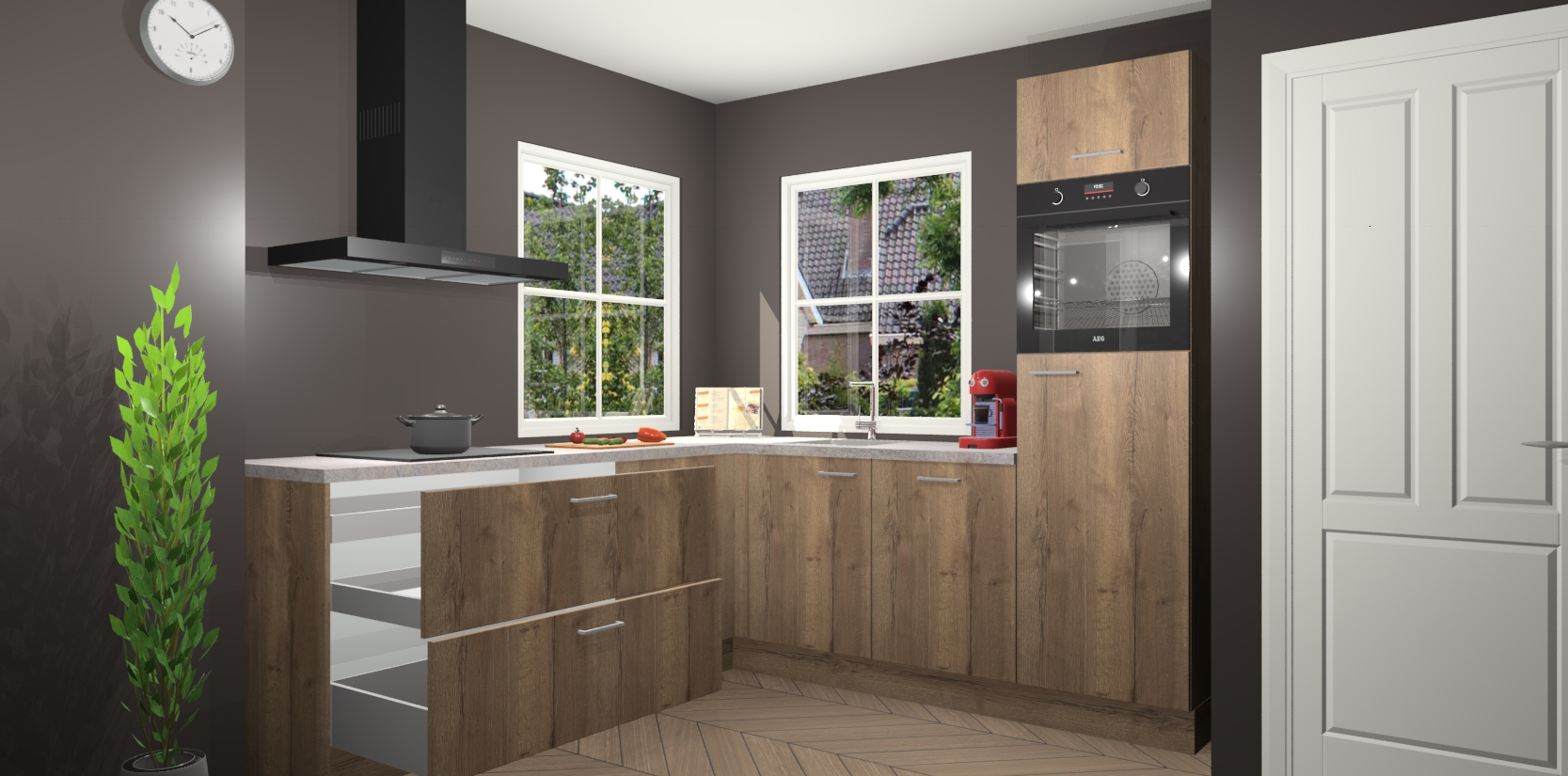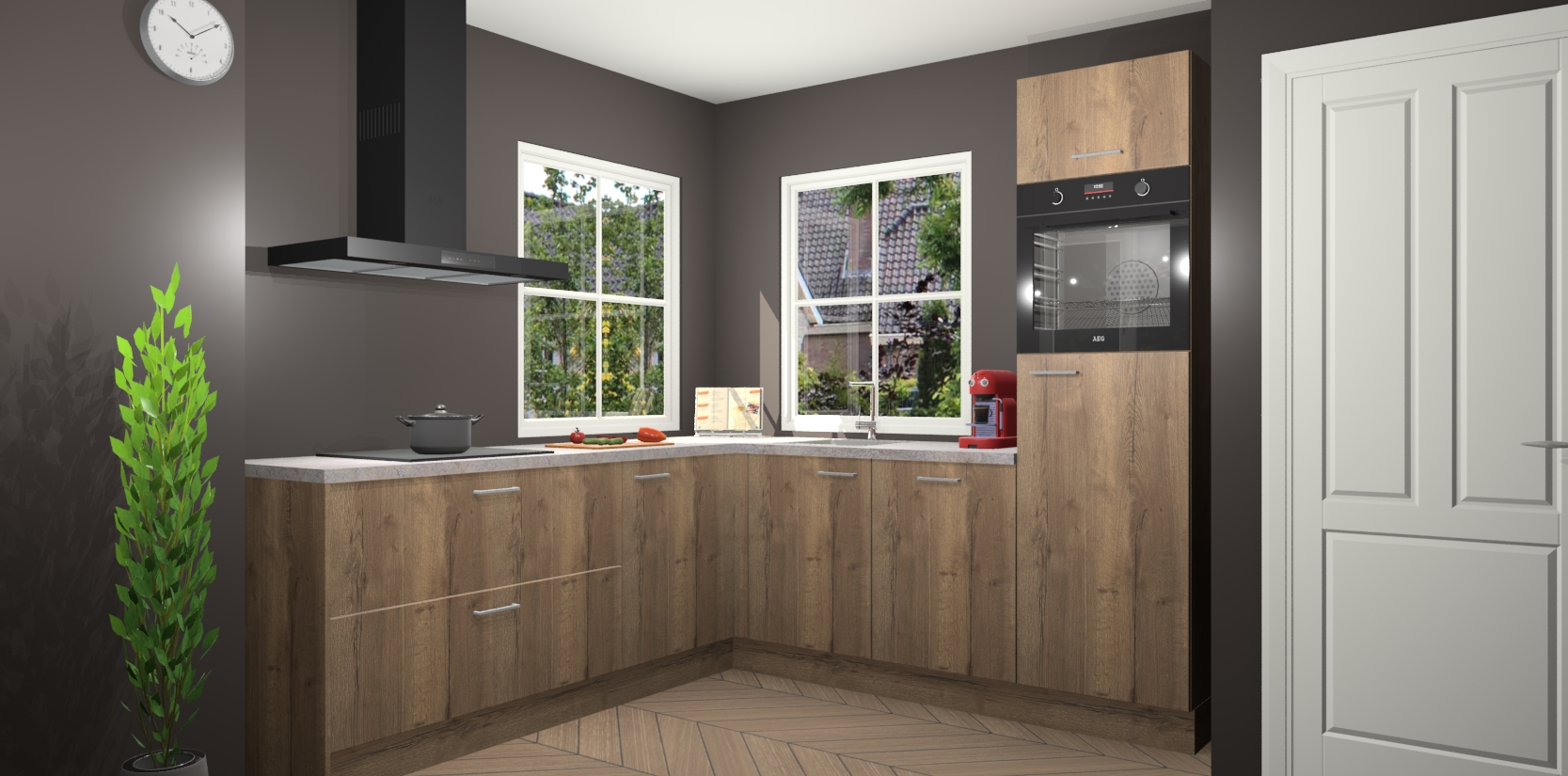 De Chocolade Eiken keuken Pai bevat vijf essentiële inbouwapparaten - een oven, inductiekookplaat, afzuigkap, vaatwasser en koelkast - zodat u er na levering meteen in kunt. Voor de slimme kopers die weten dat apparaten vaak het verschil kunnen maken tussen functioneel en luxueus, bieden we eenvoudige upgradeopties naar AEG, van oven naar combimagnetron na bestelling of naar een kookplaat met geïntrigeerde afzuiging. En met onze vaste lage prijs en snelle levering binnen zeven weken vanaf de orderbevestiging hoeft u zich geen zorgen te maken over verborgen kosten of lange levertijden die uw droomkeuken kunnen vertragen.