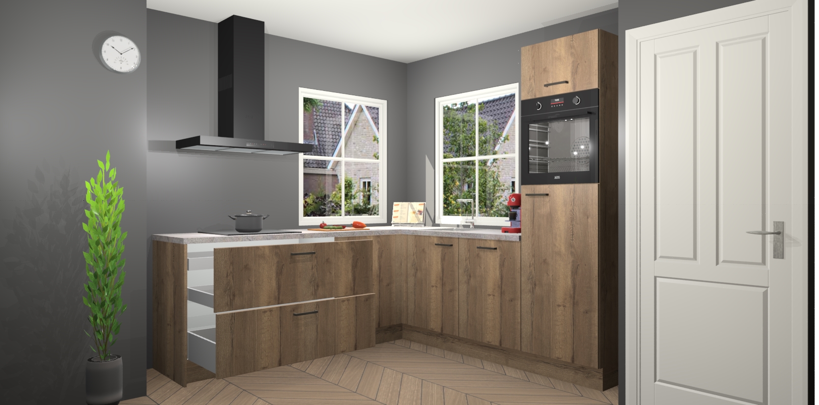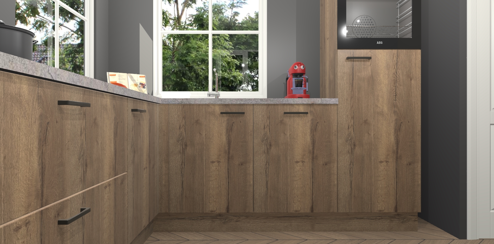 De Chocolade Eiken keuken Pai bevat vijf essentiële inbouwapparaten - een oven, inductiekookplaat, afzuigkap, vaatwasser en koelkast - zodat u er na levering meteen in kunt. Voor de slimme kopers die weten dat apparaten vaak het verschil kunnen maken tussen functioneel en luxueus, bieden we eenvoudige upgradeopties naar AEG, van oven naar combimagnetron na bestelling of naar een kookplaat met geïntrigeerde afzuiging. En met onze vaste lage prijs en snelle levering binnen zeven weken vanaf de orderbevestiging hoeft u zich geen zorgen te maken over verborgen kosten of lange levertijden die uw droomkeuken kunnen vertragen.