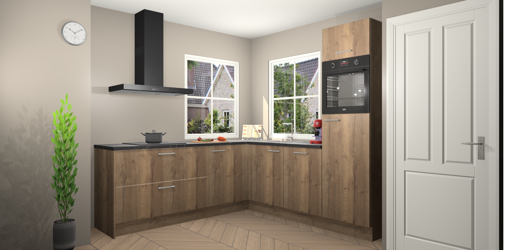 De Chocolade Eiken keuken Pai bevat vijf essentiële inbouwapparaten - een oven, inductiekookplaat, afzuigkap, vaatwasser en koelkast - zodat u er na levering meteen in kunt. Voor de slimme kopers die weten dat apparaten vaak het verschil kunnen maken tussen functioneel en luxueus, bieden we eenvoudige upgradeopties naar AEG, van oven naar combimagnetron na bestelling of naar een kookplaat met geïntrigeerde afzuiging. En met onze vaste lage prijs en snelle levering binnen zeven weken vanaf de orderbevestiging hoeft u zich geen zorgen te maken over verborgen kosten of lange levertijden die uw droomkeuken kunnen vertragen.