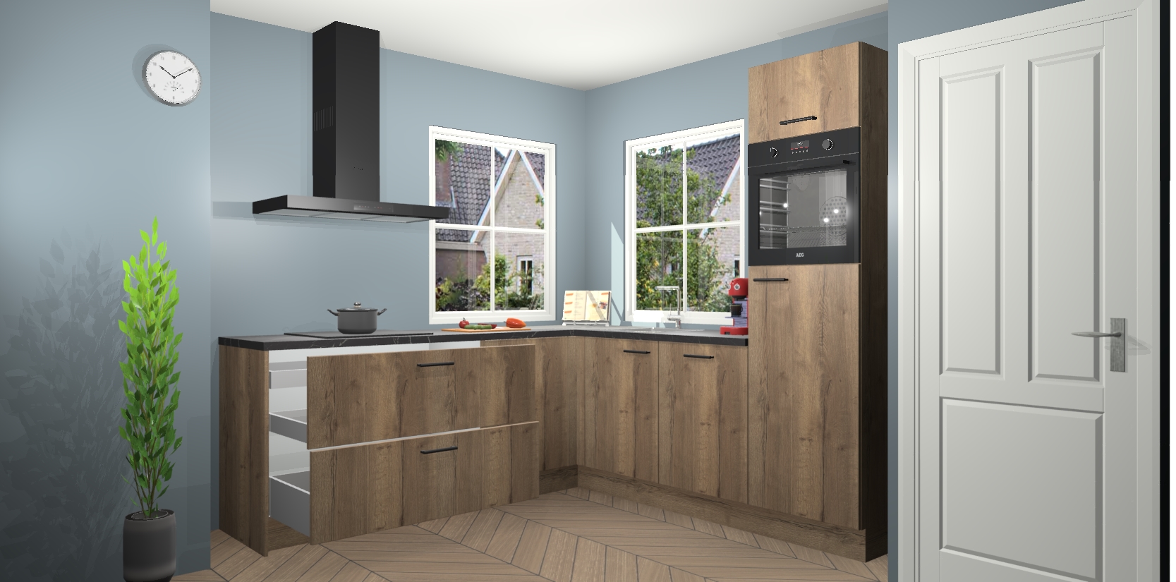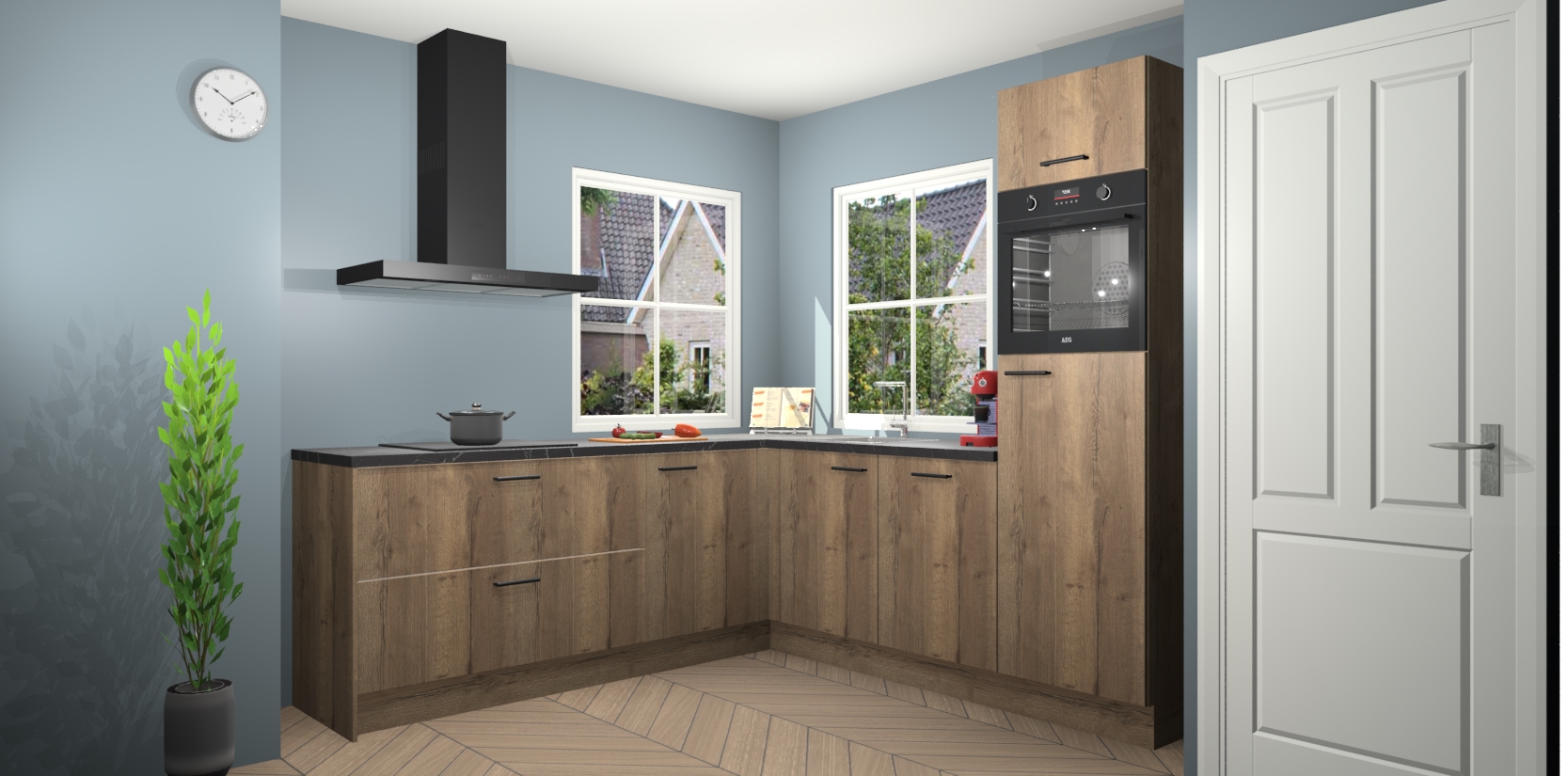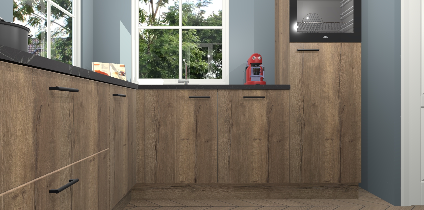 De Chocolade Eiken keuken Pai bevat vijf essentiële inbouwapparaten - een oven, inductiekookplaat, afzuigkap, vaatwasser en koelkast - zodat u er na levering meteen in kunt. Voor de slimme kopers die weten dat apparaten vaak het verschil kunnen maken tussen functioneel en luxueus, bieden we eenvoudige upgradeopties naar AEG, van oven naar combimagnetron na bestelling of naar een kookplaat met geïntrigeerde afzuiging. En met onze vaste lage prijs en snelle levering binnen zeven weken vanaf de orderbevestiging hoeft u zich geen zorgen te maken over verborgen kosten of lange levertijden die uw droomkeuken kunnen vertragen.